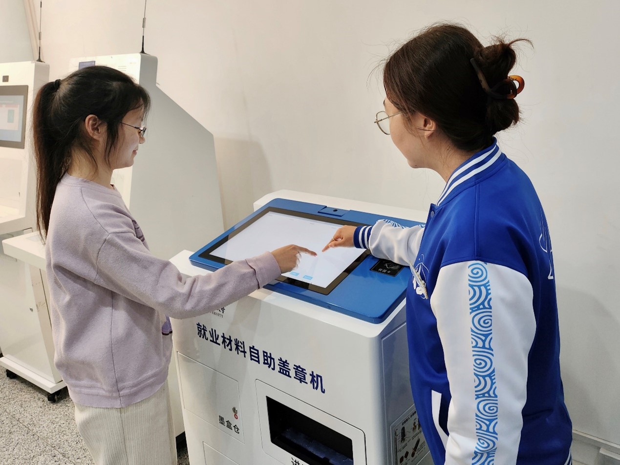 学生在使用就业材料自助盖章机