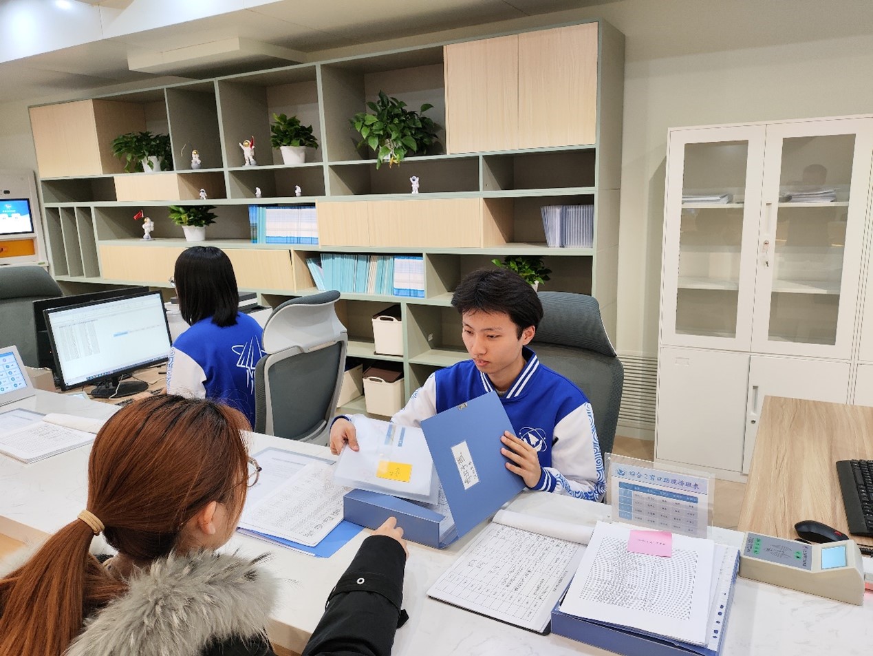 学生助理在为同学办理业务
