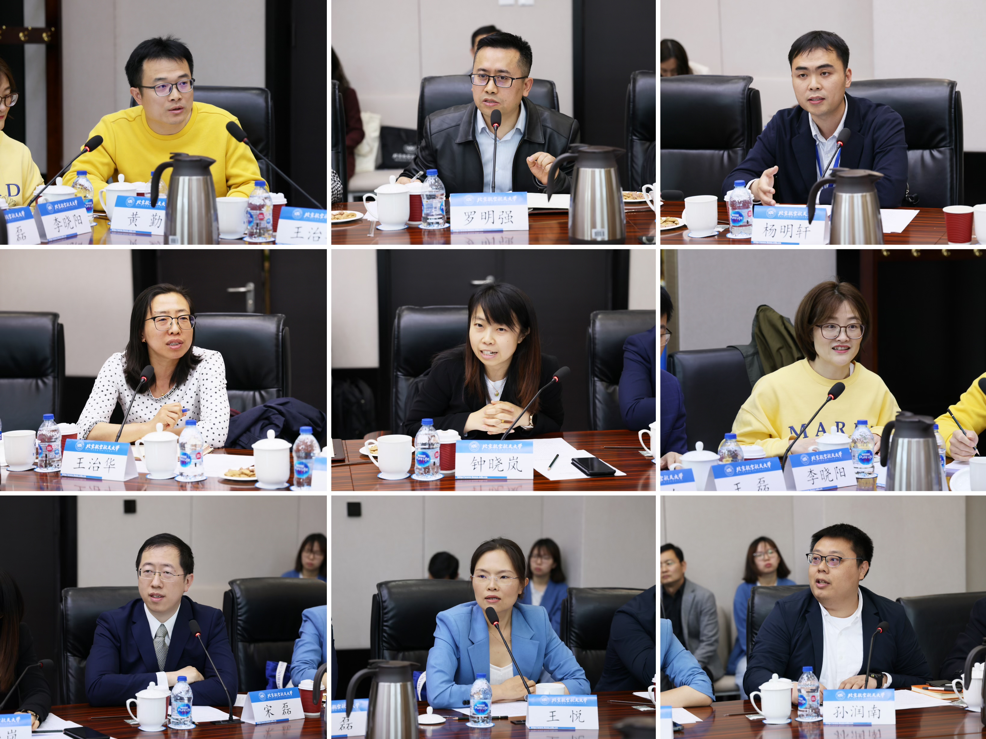 在交流研讨环节,获奖教师代表分享了参赛感悟及对教育教学工作的思考。黄勤结合个人参赛经历,分享了如何通过科研的充分积累带动教学的创新;罗明强谈到了名师指导对于青年教师成长的重要性;杨明轩谈到,希望通过校工会青年教师协会的平台,进一步加强青年教师间的学科交叉合作;王治华认为青教赛为青年教师提供了认识自我的机会,建议通过更多样化的培训激发青年教师教学热情和潜力;钟晓岚分享了如何将教学上的收获映射到科研中实现科教融通;李晓阳分享了她从青教赛选手到担任学院基层教研中心负责人,如何在课程教学中应用“两性一度”的心得体会;宋磊谈到参与学院数字实验室建设和教学实践工作情况;王悦谈到了青年教师在职业发展中遇到的问题和困惑;孙润南提出希望进一步加强对新进青年教师的教学指导与培训,通过理工科的可视化手段助力文科教学。