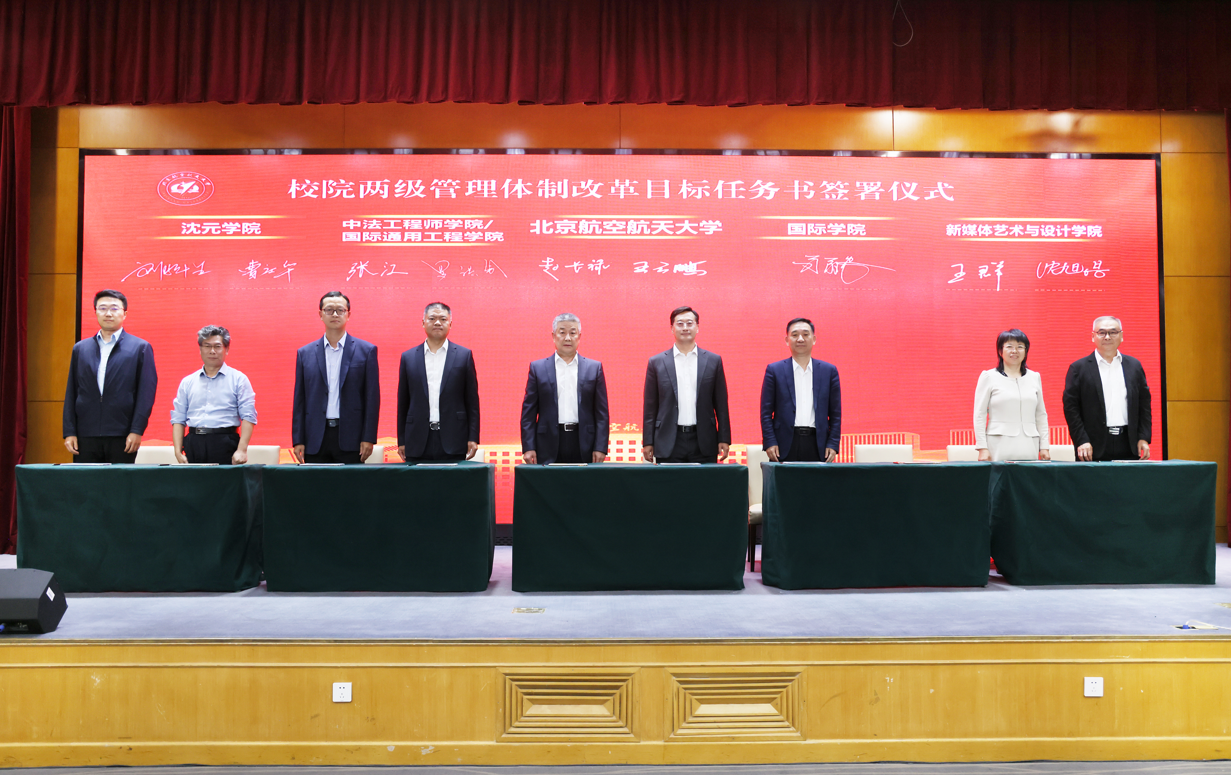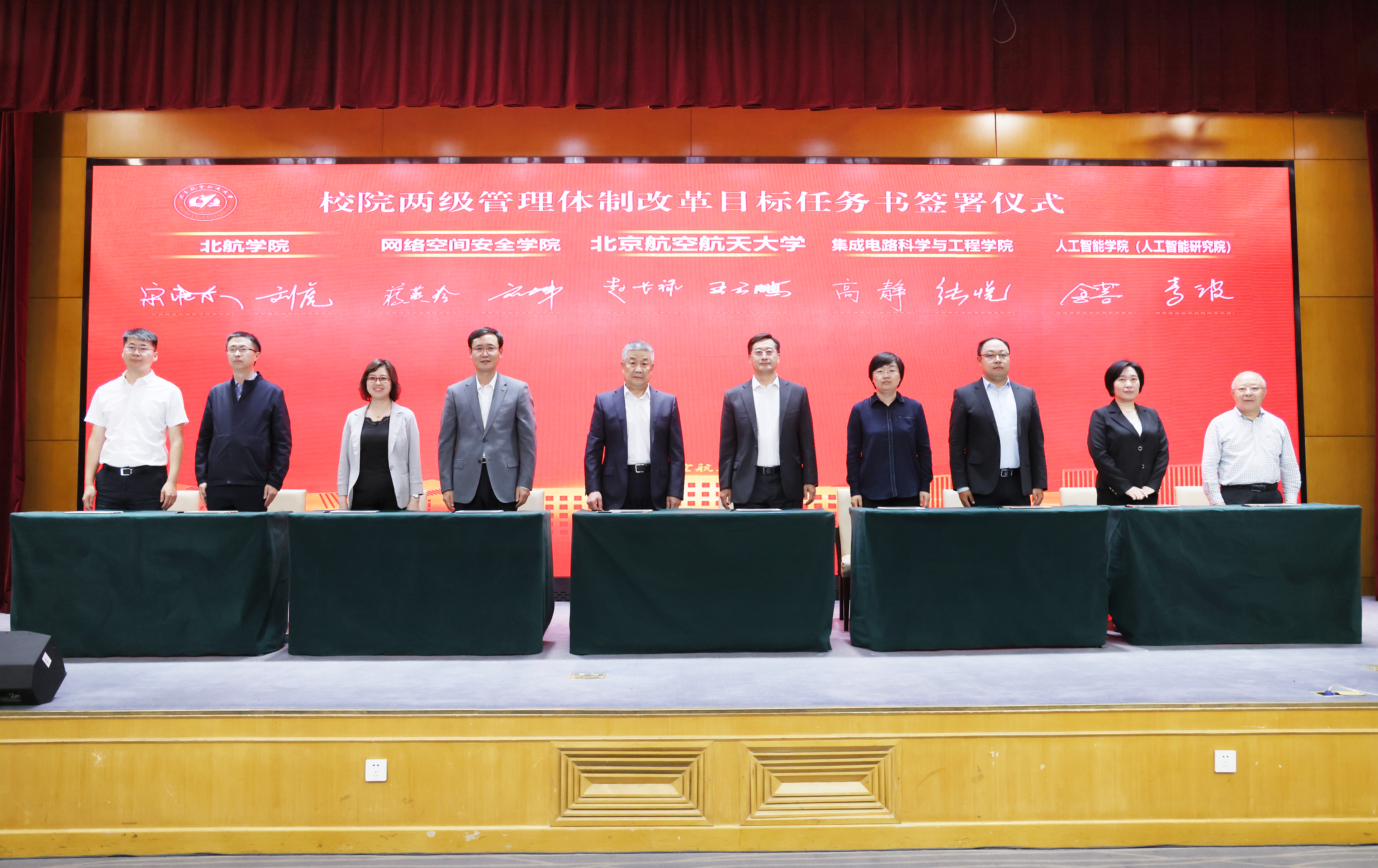 赵长禄、王云鹏和北航学院、网络空间安全学院、集成电路科学与工程学院、人工智能学院(人工智能研究院)签署校院两级管理体制改革目标任务书
