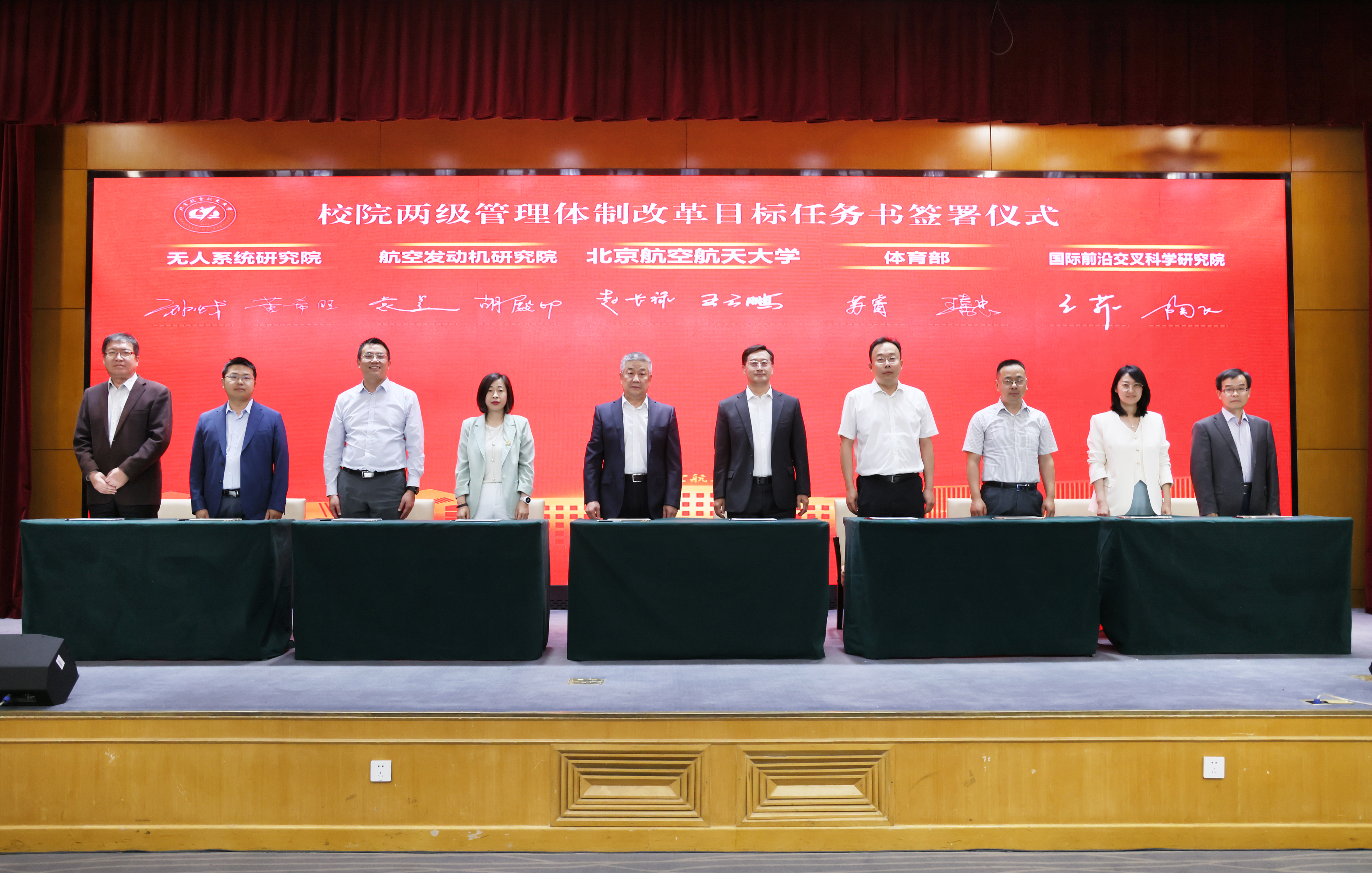赵长禄、王云鹏和无人系统研究院、航空发动机研究院、体育部、国际前沿交叉科学研究院签署校院两级管理体制改革目标任务书