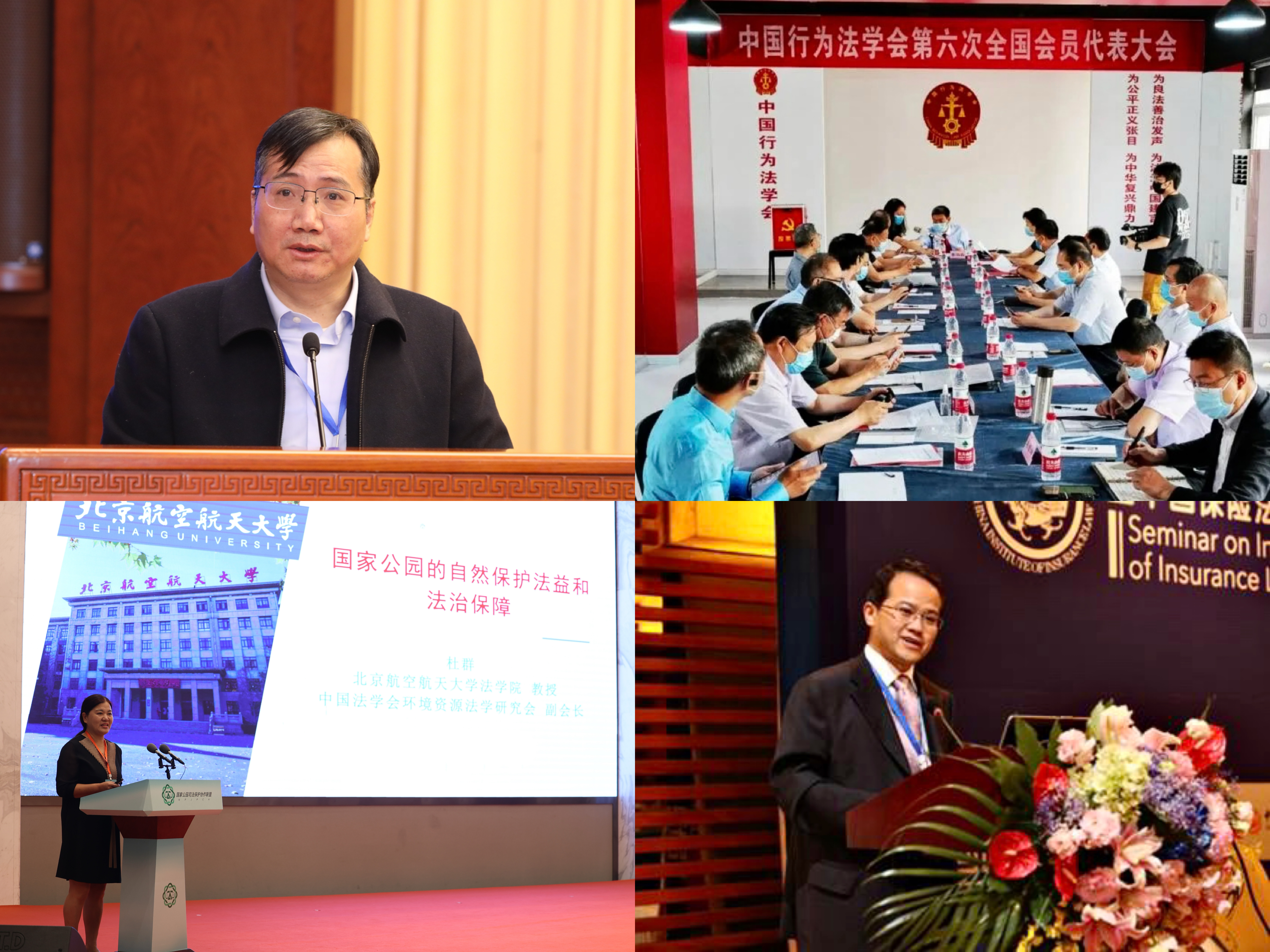 2023年3月,龙卫球教授再次当选中国法学会网络与信息法学研究会副会长(左上);2020年6月,龙卫球教授当选中国行为法学会副会长(右上);2023年10月,杜群教授再次当选中国法学会环境资源法学研究会副会长(左下);2016年6月,任自力教授再次当选中国法学会保险法学研究会副会长兼秘书长(右下)