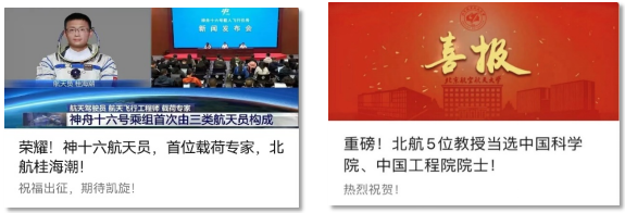网络空间是培育和践行社会主义核心价值观重要的思想阵地,进一步加强网络文明建设,培育积极健康的网络文化,对于深入推进精神文明建设具有重要意义。近年来,官微“航小萱”全力做到短、实、新、强,狠抓内涵质量建设,年均产生10篇“10万 ”,策划了“5位教授当选两院院士”“桂海潮老师出征太空”等一批热点作品,受到社会广泛关注,进一步激发了师生爱校荣校情怀、凝聚了干事创业力量,连续获中国大学官微十强,荣获中央网信办“百个优秀网络正能量建设者”称号。主流媒体积极踊跃报道北航高质量发展成绩,中央媒体年均报道学校近百次,学校影响力和美誉度持续提升,师生对学校工作的知晓度、参与度、兴奋度不断增强,崇尚立德树人成效、崇尚卓越学术成就在学校蔚然成风。近年来,学校荣获“首都文明校园”称号,师生先后获得全国五一劳动奖章、首都道德模范、中国大学生自强之星等多项荣誉,在实际行动中践行北航精神。