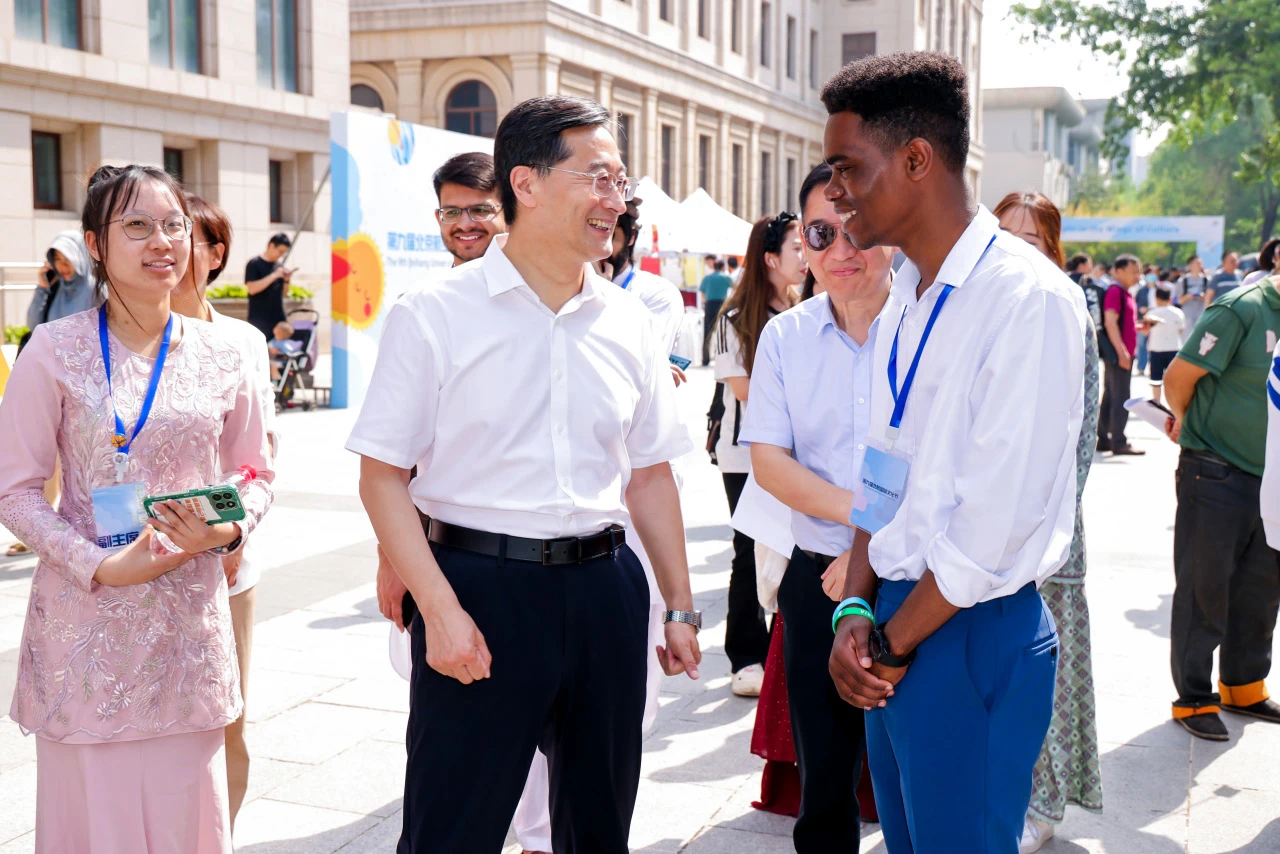 校长王云鹏在国际文化节上和中外学子亲切交流