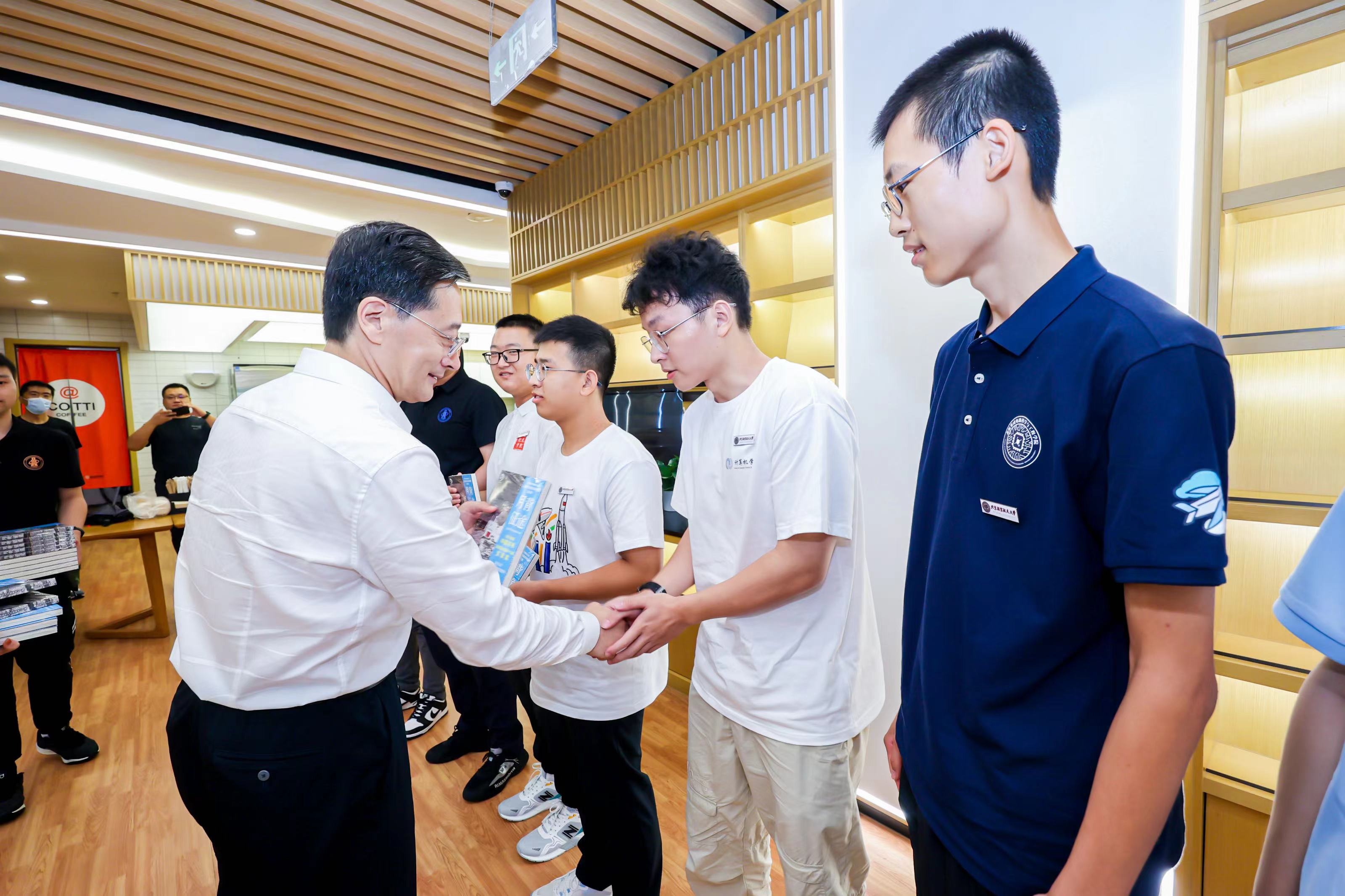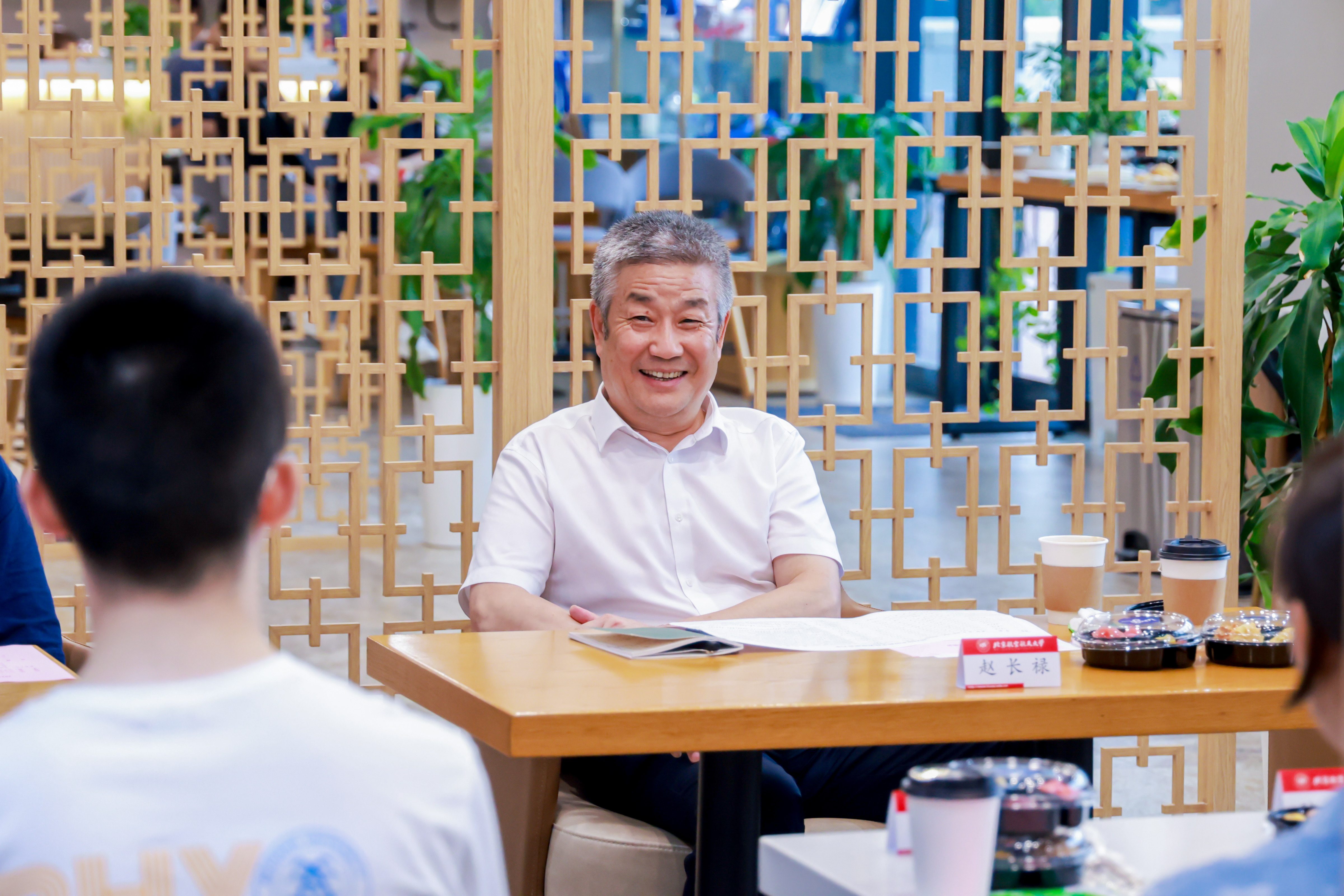 赵长禄、王云鹏来到新生们中间,与同学们一一握手,向他们入学北航、成为新北航人表示热烈祝贺与欢迎。座谈会现场气氛轻松热烈,同学们敞开心扉、畅所欲言,结合自身成长感悟,分享了报考北航的缘由、入学北航的感受以及对大学生活的期待与规划。