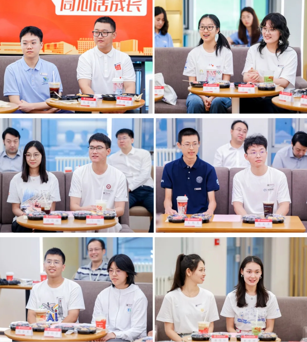 计算机学院尚文涛分享了作为研究生支教团成员在支教过程中不断沉淀自己,找到了自身价值并明晰未来方向的历程。集成电路科学与工程学院王禺尧分享了自己通过大中衔接课程与北航结缘,并成功入学集成电路学院的激动心情。医学科学与工程学院陈怡霏介绍了作为首届运动康复专业学生,希望加强专业学习、发挥特长、不断进步的期望。人工智能学院刘金虎介绍了源于对航空的兴趣,希望能通过人工智能技术助力航空航天事业发展的志向。新媒体艺术与设计学院马越表达了希望借助新媒体这一交叉学科平台,结识更多跨学科领域的同辈伙伴,不断突破舒适区的愿望。中法工程师学院范熙妍表达了希望通过与法国的学习交流,借鉴法国航空航天体系和产业链,强化中国航空航天事业建设的决心。沈元学院李堉锟介绍了自己对北航新生活的感受,并对未来的学习生活充满期待。外国语学院仇睿铭表达了自己作为法语专业学生,期望通过北航的良好学习环境与交流平台不断进步的希冀。