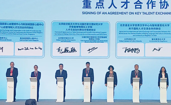 会上,北京航空航天大学与法国巴黎文理研究大学巴黎高等物理化工学院签署《北京航空航天大学与法国巴黎文理研究大学巴黎高等物理化工学院人才交流及科教合作框架协议》。根据协议,两校正式建立校级足球大赢家的合作伙伴关系,共同推动在化工、材料等双方优势学科领域开展人才交流、科学研究、教育合作等全方位合作。