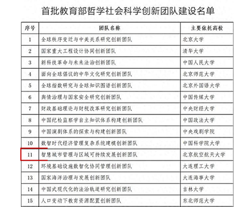 学院“智慧城市管理与区域可持续发展创新团队”获批首批教育部哲学社会科学创新团队