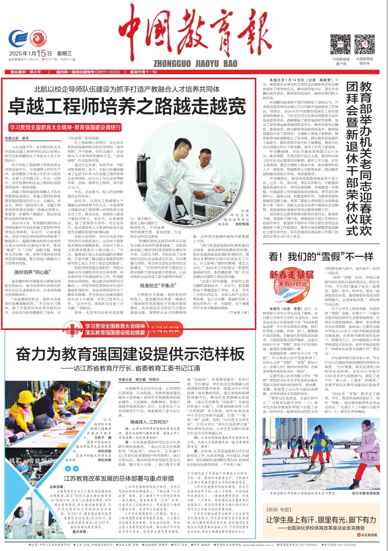 《中国教育报》头版头条2025年1月15日(记者 梁丹)报道: