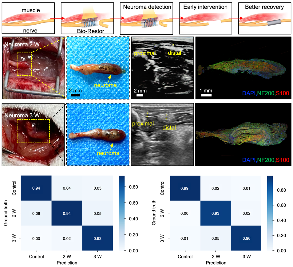 该神经接口还可在早期识别出异常再生神经瘤的形成(准确率94%,较传统超声诊断方法提前一周),从而实现及时干预并显著改善治疗效果,这对优化临床疗效具有关键意义。