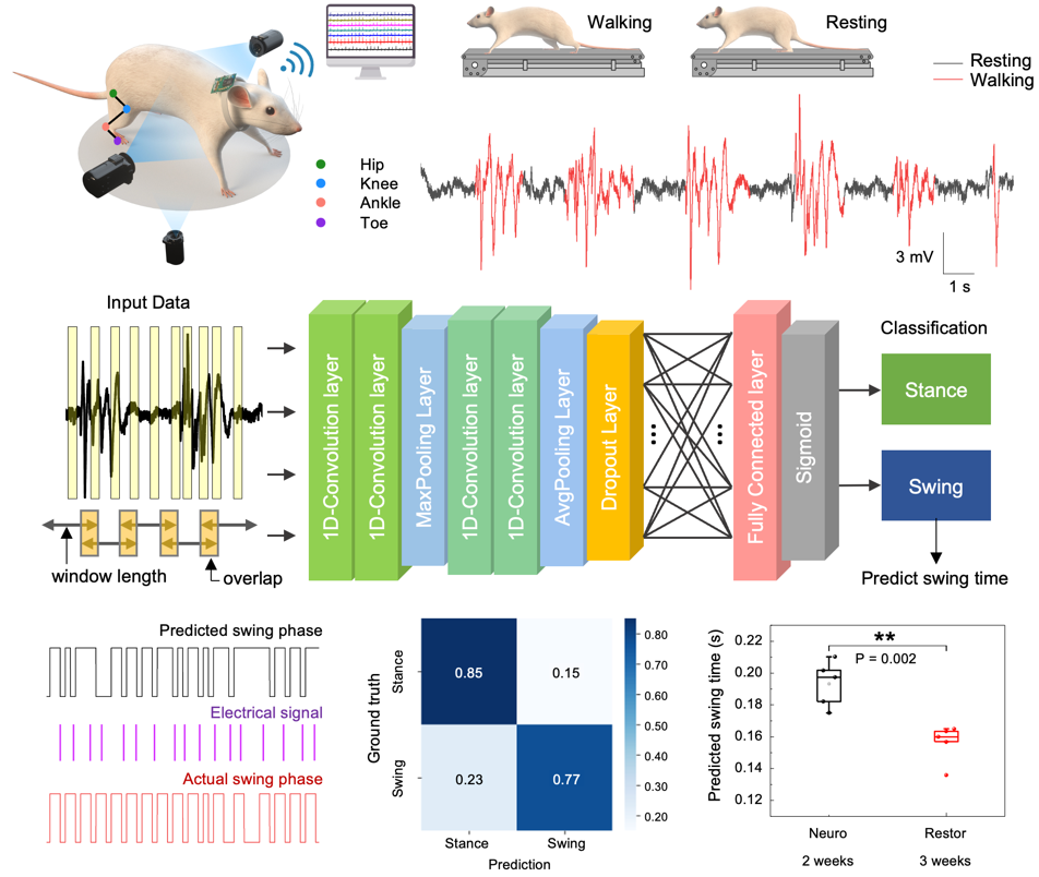 神经接口结合机器学习算法对步态功能恢复评估效果图