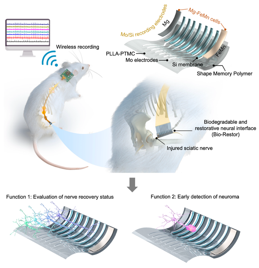 北航新闻网2月21日电(通讯员 杨贤达)周围神经损伤是临床常见问题,实现损伤神经的高效修复并在修复早期进行实时监测以适时干预,对于达到最佳治疗效果至关重要。尽管传统的植入式电刺激神经修复器件能够促进神经修复,但其不可降解的设计以及在体修复效果实时表征能力的缺失,严重制约了其临床应用前景。2025年2月18日,北京航空航天大学生物与医学工程学院、生物力学与力学生物学教育部重点实验室、北京生物医学工程高精尖创新中心樊瑜波教授团队,在《自然通讯》(nature communications)杂志上在线发表了题为“一种用于神经病理性损伤修复和监测的生物可降解外周神经接口”(a biodegradable and restorative peripheral neural interface for the interrogation of neuropathic injuries)的研究论文,首次实现了对神经修复效果的实时动态监测,还可用于对神经瘤的早期诊疗。樊瑜波教授、王丽珍教授、清华大学尹斓副教授、张沕琳副教授和中国人民解放军总医院王玉副研究员为该文的共同通讯作者,王柳助理教授、骨研所张铁元博士、清华大学雷佳鑫博士和镁伽机器人公司汪世溶博士为共同第一作者,北京航空航天大学为第一完成单位。