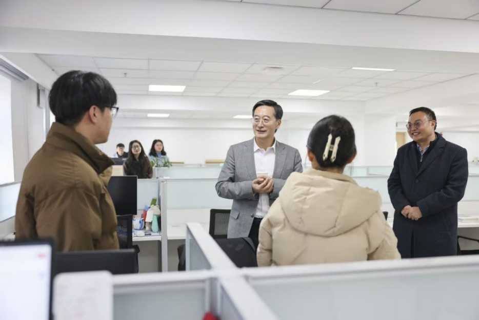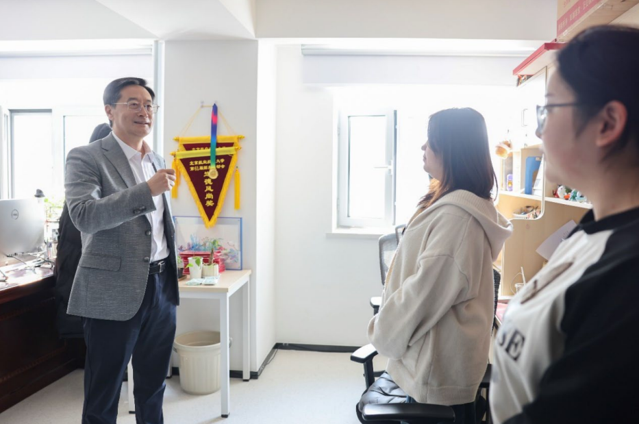 在九号楼,王云鹏听取了楼宇的整体修缮及使用情况,现场察看了各学院搬迁进展及办公室、会议室的具体设置,与学院教师、辅导员、博生研究生亲切交流,关怀大家工作、学习、生活状况,详细询问办公环境改善情况,指导学院相关工作,并认真听取有关意见建议。