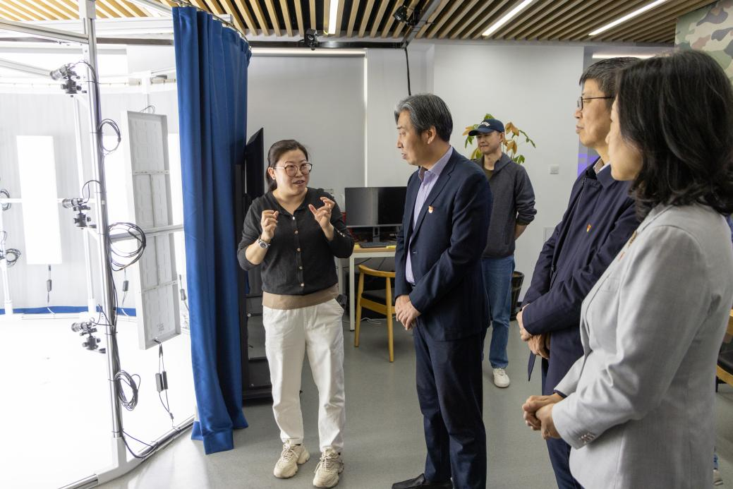 随后,语合中心一行参观了我校虚拟现实技术与系统全国重点实验室,并与实验室相关负责人围绕vr技术在中国国际中文教育、文化活动体验方面的应用前景进行了交流。