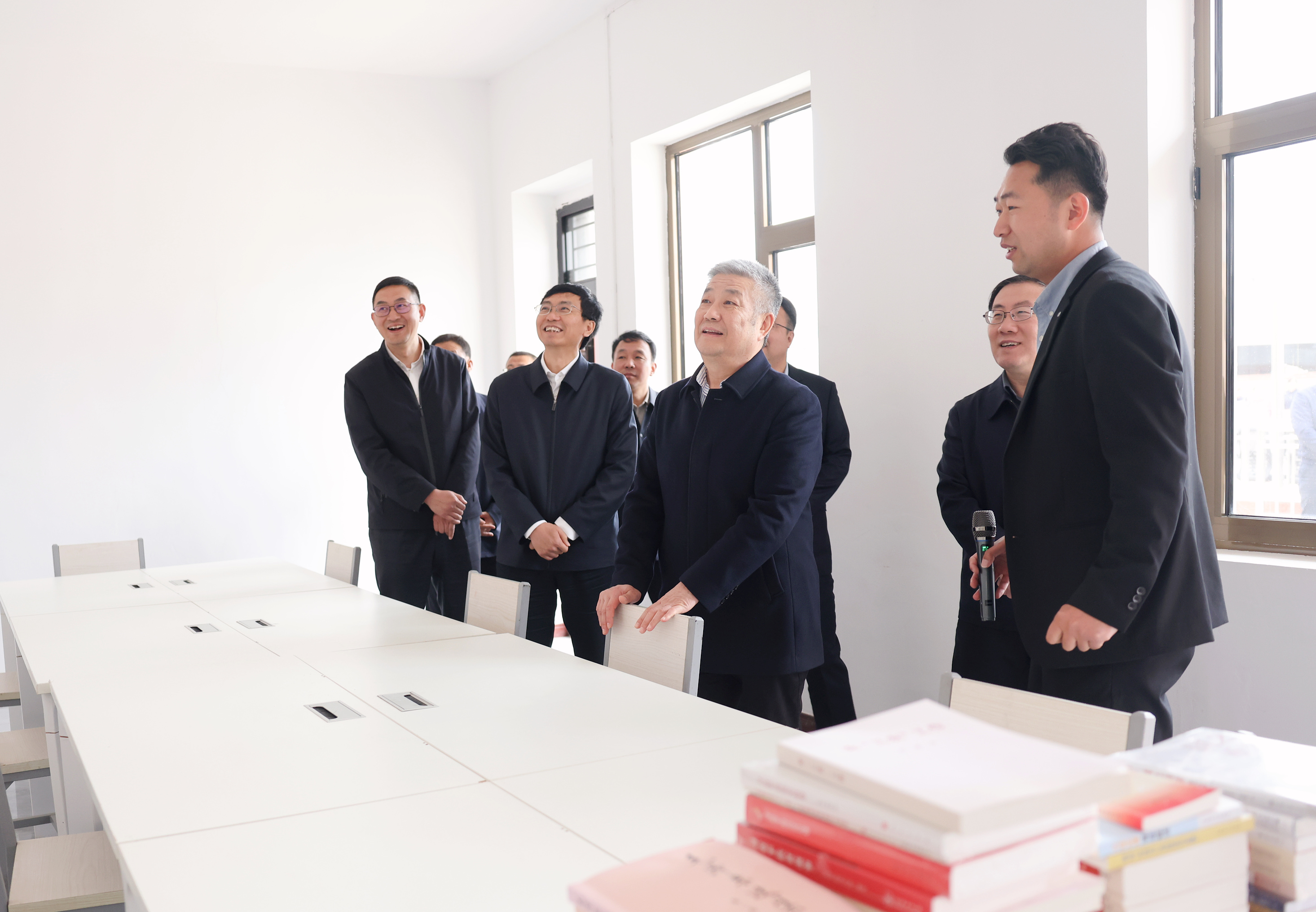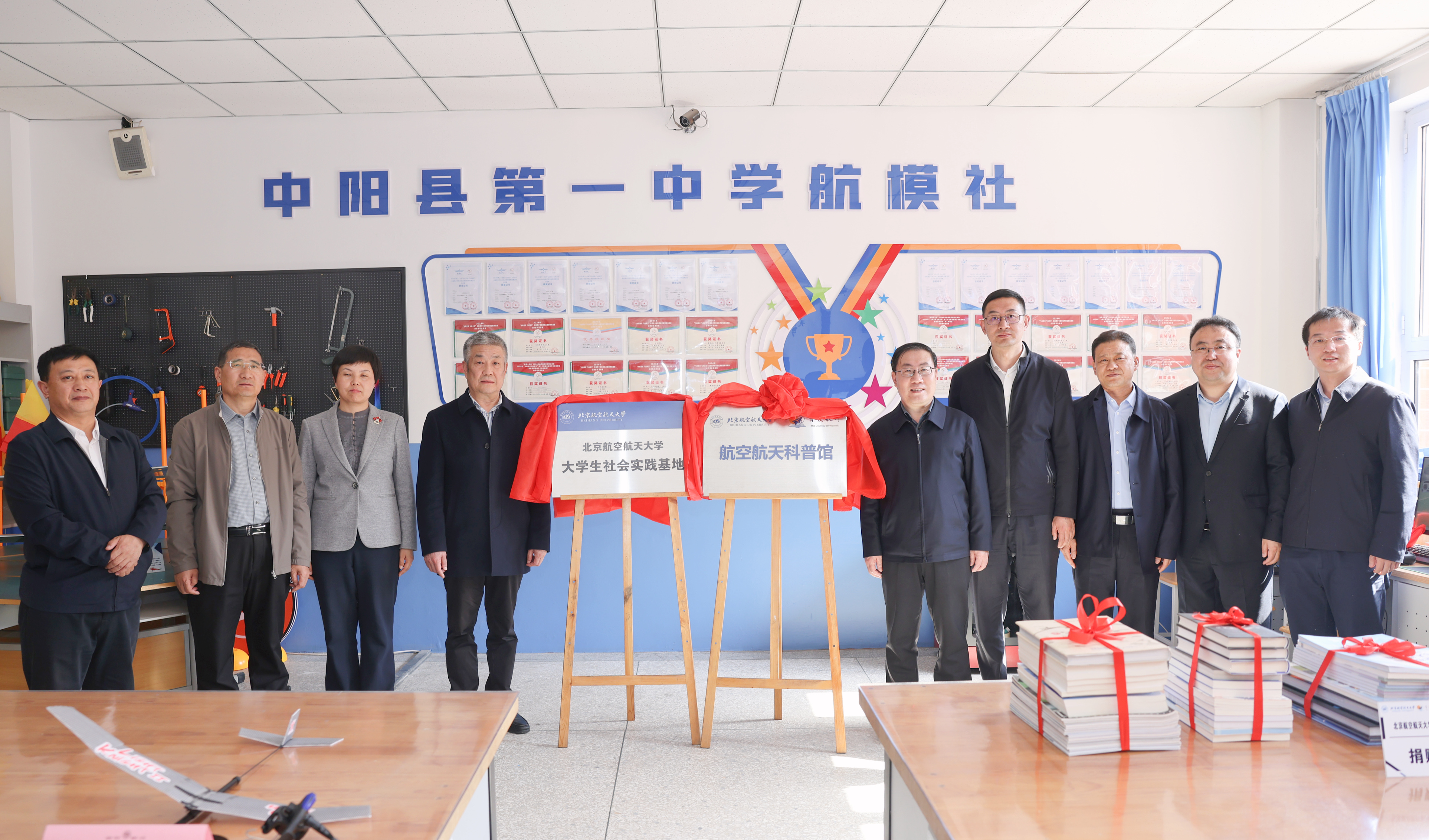 随后,赵长禄来到中阳县第一中学校,听取了中阳一中校长许建华对学校近年来在教育教学质量提升和创新人才培养方面取得的成效,考察了航空航天科普馆,出席北航大学生社会实践基地揭牌活动及图书捐赠仪式,并看望了北航第26届研究生支教团山西中阳分团成员,与大家亲切交流。赵长禄表示,教育是乡村振兴的基石,学校将继续大力支持中阳一中在教育教学改革、师资培训和学生能力培养等方面的工作,助力当地教育事业高质量发展。