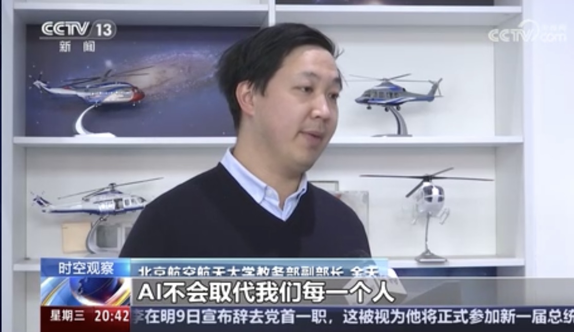 cctv《东方时空》2025年4月9日报道北航利用ai赋能教学科研,聚焦北航利用ai大模型设计大飞机,采访我校航空科学与工程学院副院长罗明强、教务部副部长金天及部分学生: