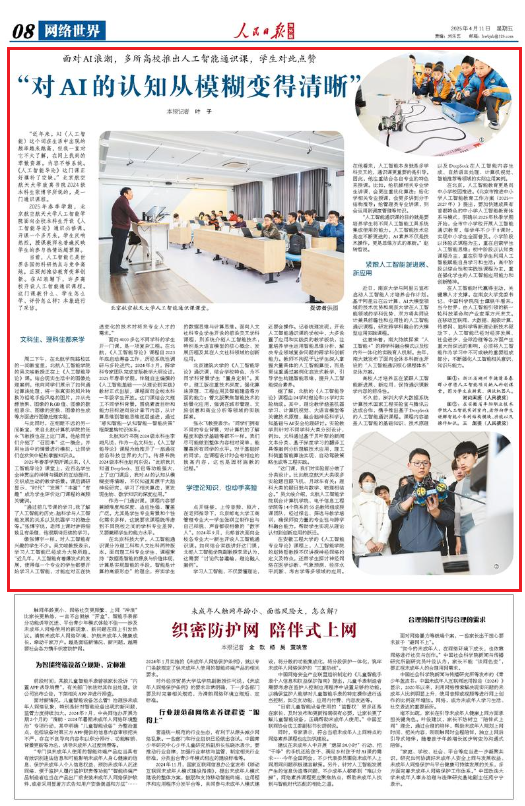 北航知行书院2024级本科生李翊凡说,作为一名文科生,《人工智能导论》课程为她推开了一扇通往前沿科技世界的大门。传源书院2024级本科生赵向东说:“此前我只知道deepseek、豆包等功能强大,上了这门课后,我对ai的认知从模糊变得清晰,不仅知道其源于大脑神经研究,学习了相关算法,更发现生物、数学知识的深度应用。”