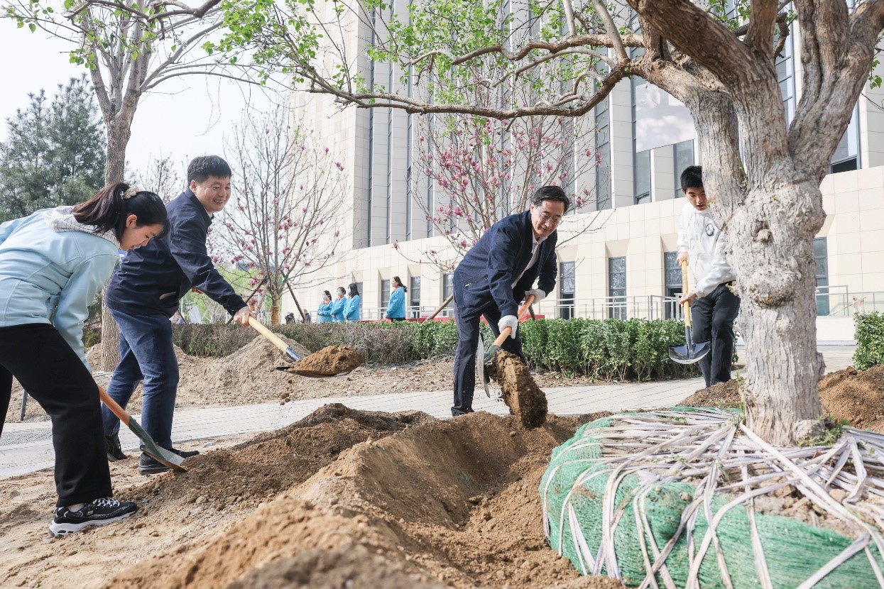 北航新闻网4月14日电(通讯员 刘续扬 冯丽娜)春和景明,万物竞发,正是植树添绿好时节。4月11日上午,党委书记赵长禄,校长王云鹏,副校长刘树春,党委副书记程波,副校长吕金虎、邓怡、吴江浩与师生代表来到沙河校区新建图书馆室外东侧绿地,开展春季义务植树活动,共同为北航校园增绿添彩。