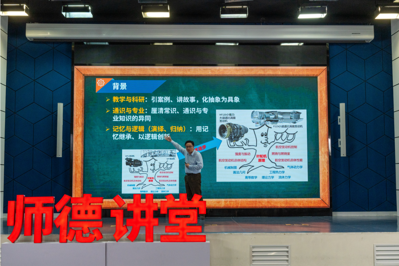 能源与动力工程学院桂幸民老师以“知行合一,教学相长”为主题交流了有关工学教育的三点体会。他首先探讨了美国、中国与西欧工学教育的差异,强调要将基础理论教育与工程实践教育相结合,即要厘清“教学与科研”“通识与专业”“记忆与逻辑”三个关系。在教学与科研方面,桂幸民以“三级离心压气机”的故障案例,生动讲解了如何将抽象的科研知识转化为具象的教学内容;在通识与专业方面,从“压气机叶片设计为什么要扭”这一问题出发提出要厘清常识、通识与专业知识的异同;在记忆与逻辑方面,提出要结合案例开展记忆式教学,通过定性的方法开展逻辑式教学,并在定量化后使得逻辑更加实在和简化。最后,桂幸民引用徐光启《几何原本》的“实至明”“实至简”“实至易”等强调了“实”的重要性。
