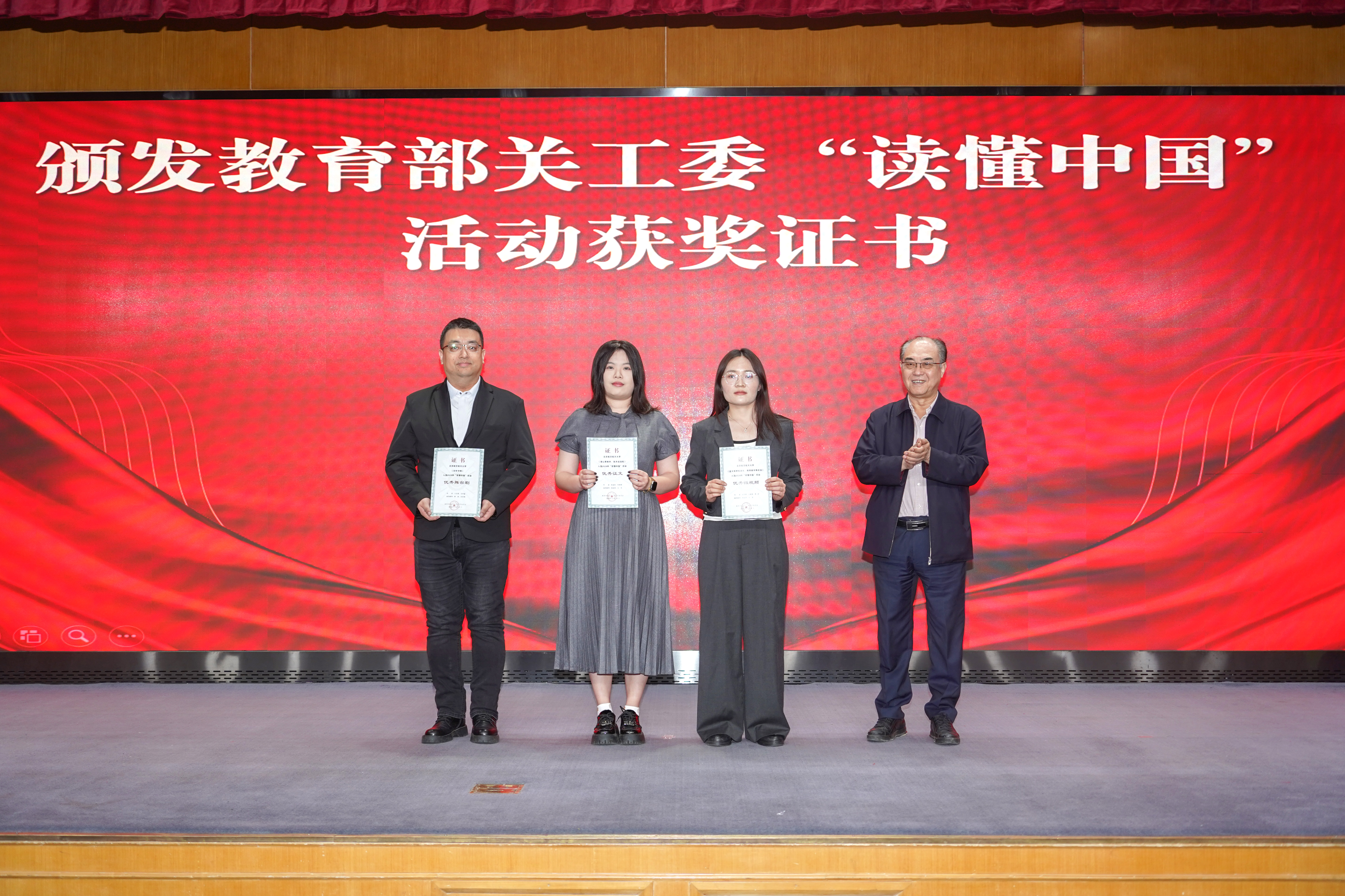 为荣获北航关工委“读懂中国”活动奖项的个人颁奖