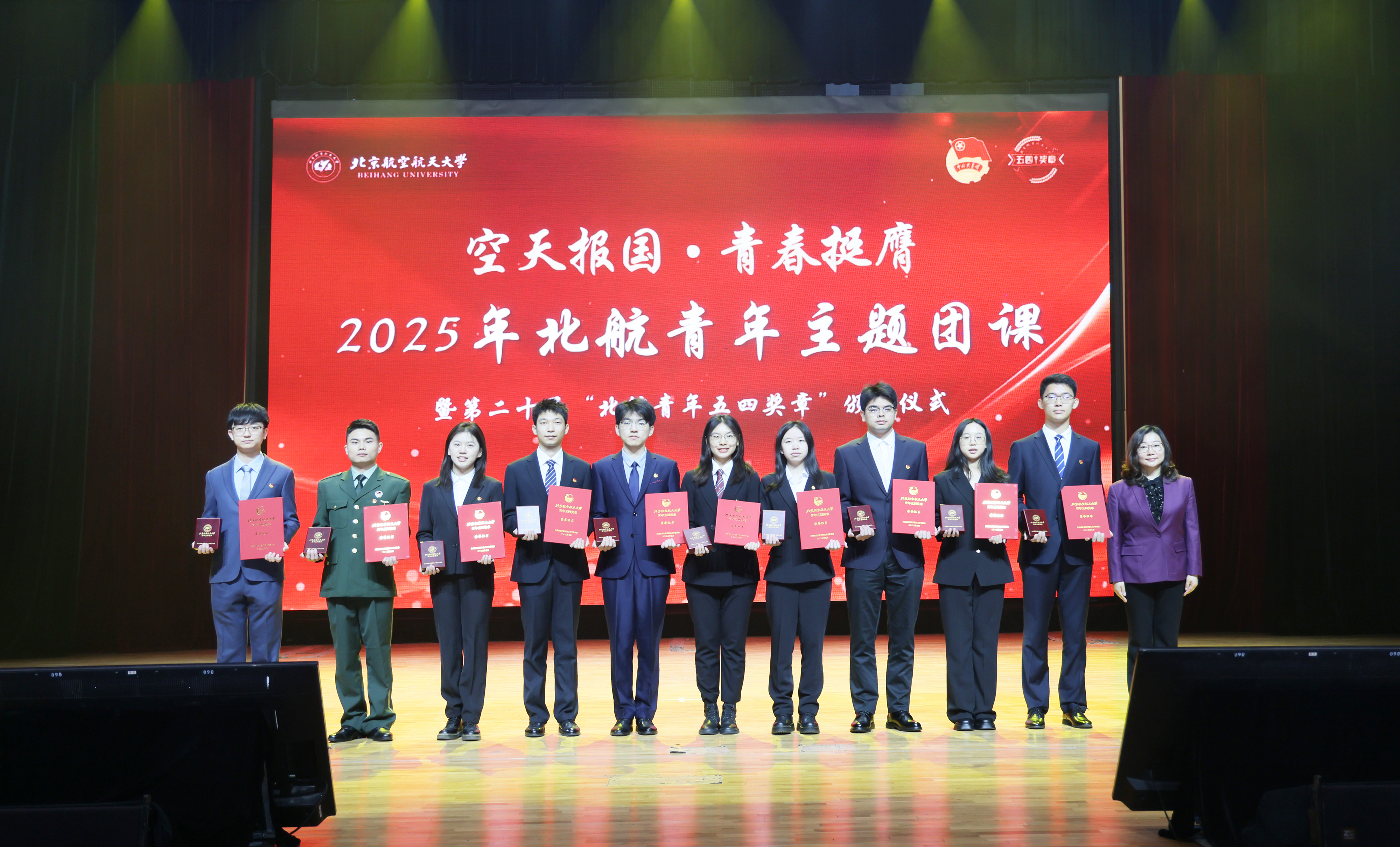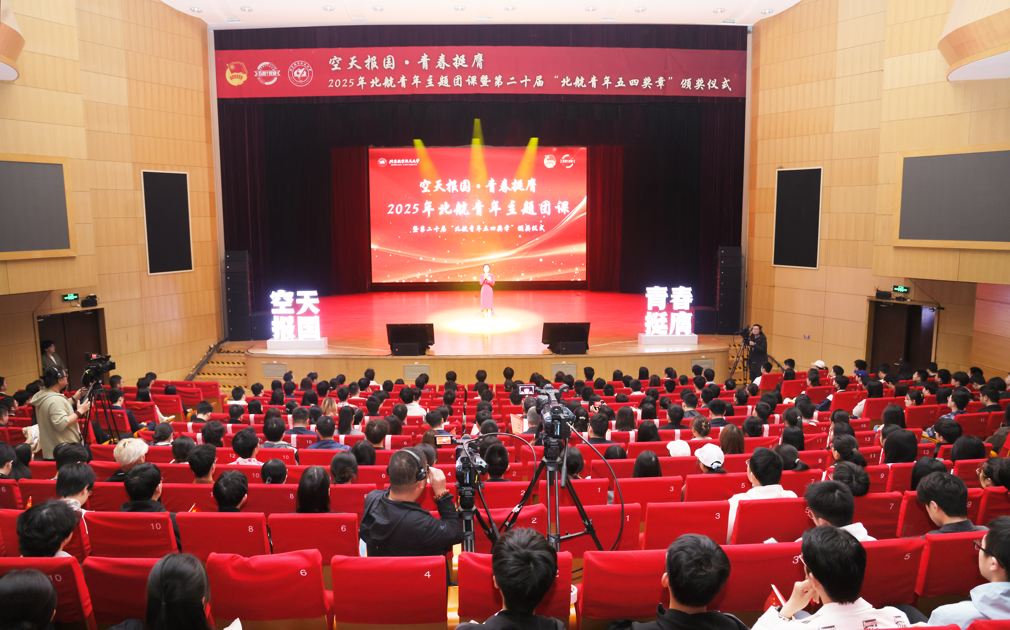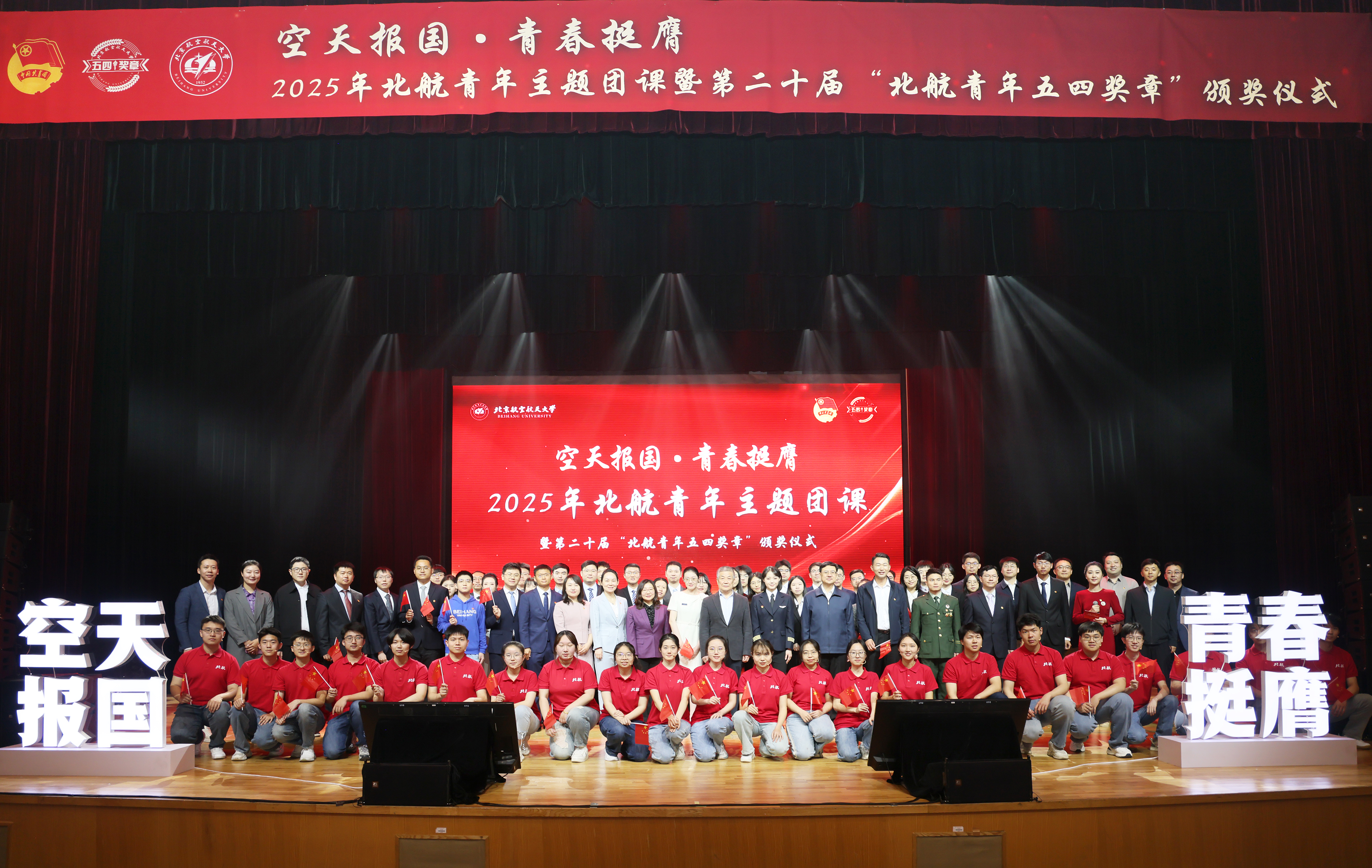 北航新闻网5月3日电(通讯员 李奎举 邹雨初 郝旭春/文 记者 邸白鹭 通讯员 邹雨初 田俊朋 奚睿璿/摄影)为传承五四精神,展现青年奋斗风采,在五四青年节到来前夕,北航举行“空天报国·青春挺膺”2025年青年主题团课暨第二十届“北航青年五四奖章”颁奖仪式。校党委书记赵长禄现场寄语新时代北航青年。共青团中央青年发展部一级巡视员郭美荐,工业和信息化部直属机关团委书记、二级巡视员倪玉婷,副校长邓怡出席活动。本次主题团课以线下、线上相结合的方式,在京杭两地三校园同步进行。我校青年师生600余人在学院路校区晨兴音乐厅集中参与,校学生会、研究生会、高水平科创院队、研究生支教团、各学院分团委、基层团支部在各视频会议点同步收看直播。