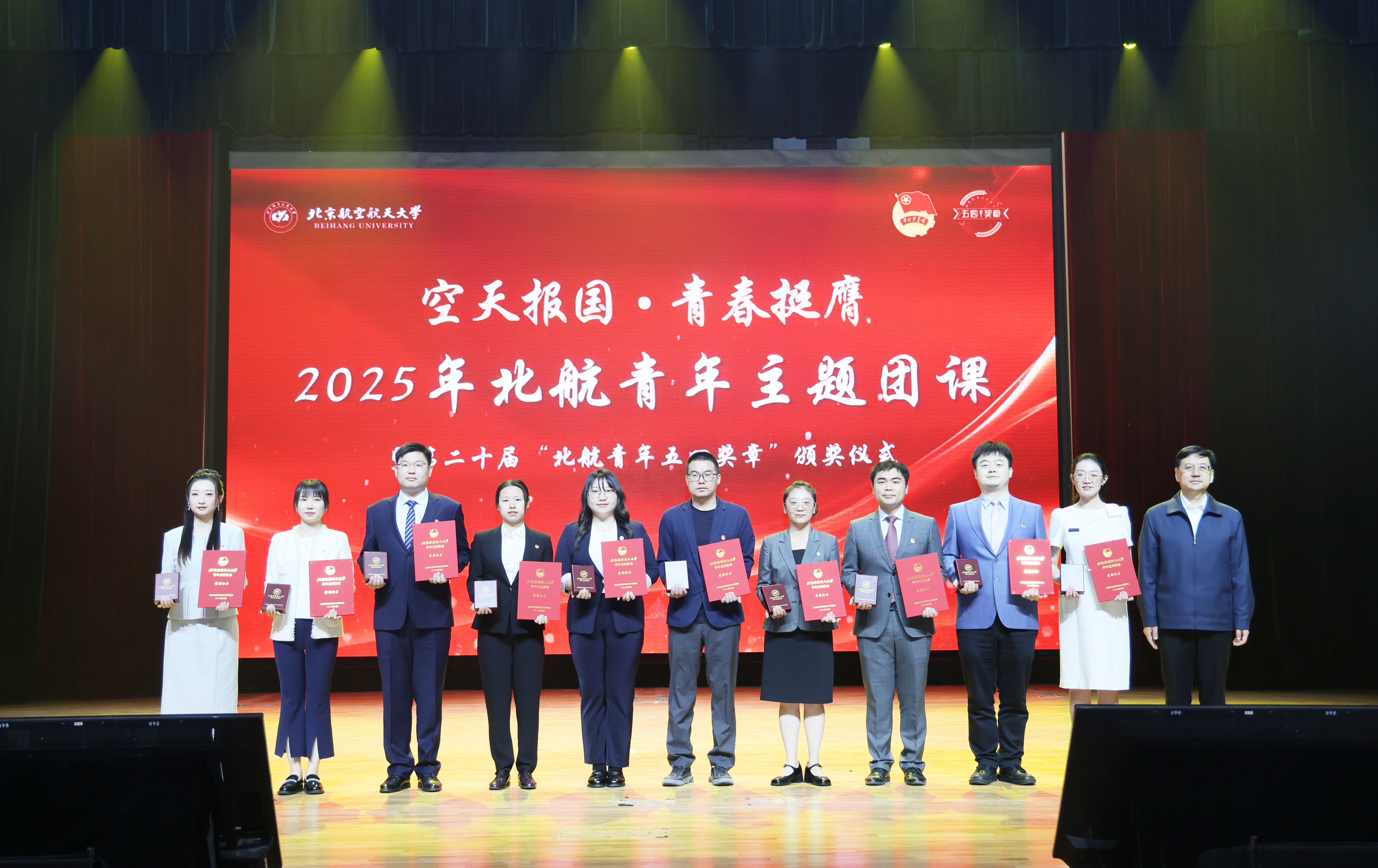 活动现场,校领导和嘉宾为第二十届“北航青年五四奖章”获奖个人和集体颁奖。