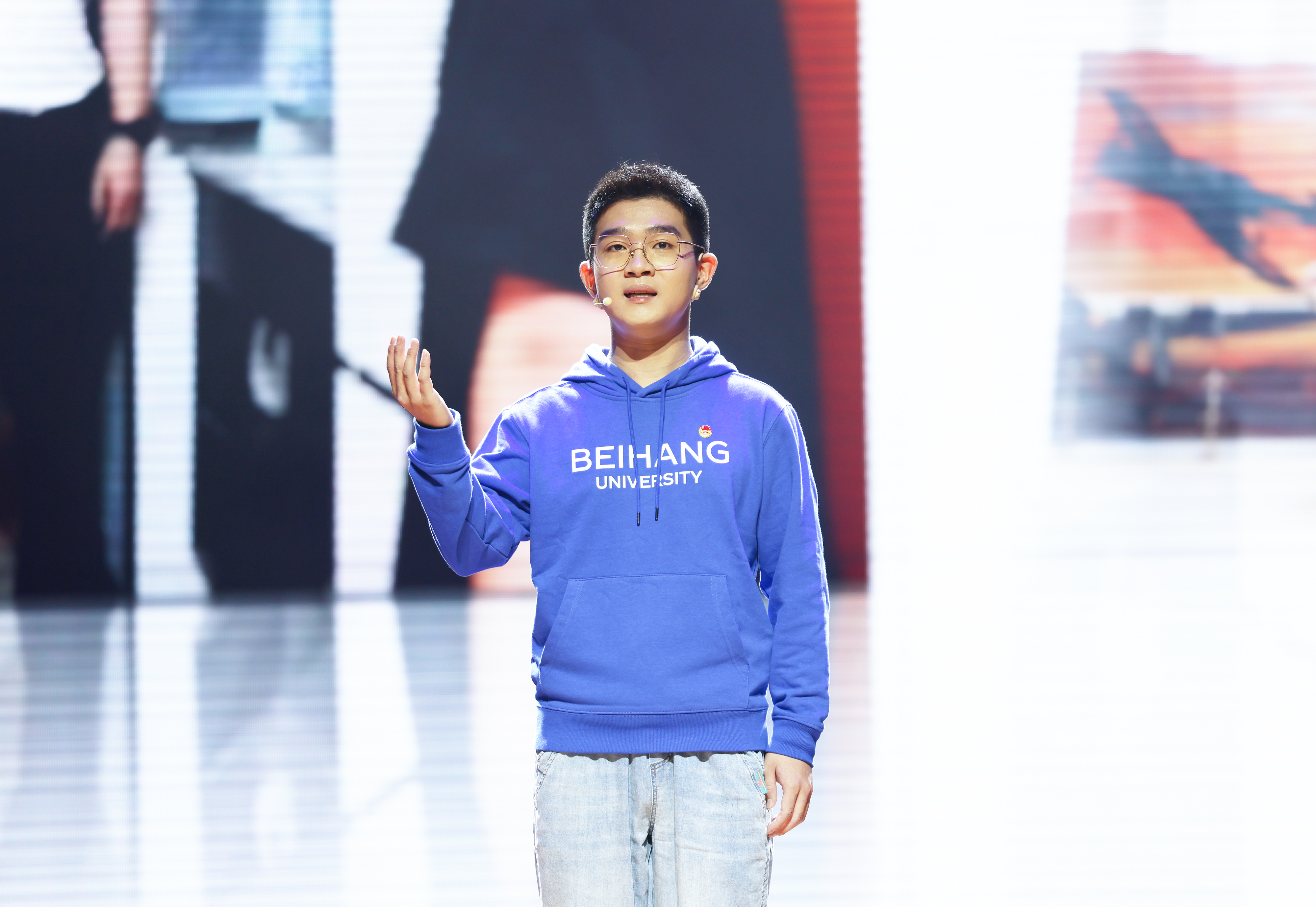 北航学生合唱团携手第二十届“北航青年五四奖章” 获得者、主题演讲青年代表共同唱响《有我》,不仅重温了百年奋斗历程,传递了新时代青年的热血与担当,更饱含“请党放心,强国有我” 的青春誓言。