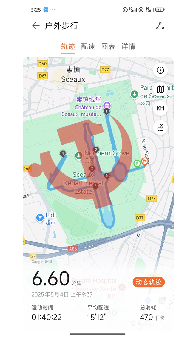 北航新闻网5月5日电(通讯员 殷传涛)为了庆祝五四青年节,北航在法留学生与校友代表于5月4日清晨在巴黎郊区的索肖公园,开展了“百年逐梦行、徒步绘党徽”五四青年交流活动。活动以徒步交流的形式,重温百年前中国青年的觉醒历程,激励新时代北航青年以“强国有我”的担当投身民族复兴伟业。副校长赵巍胜和中法工程师学院、集成电路科学与工程学院、杭州国际创新研究院的在法师生代表参加活动。