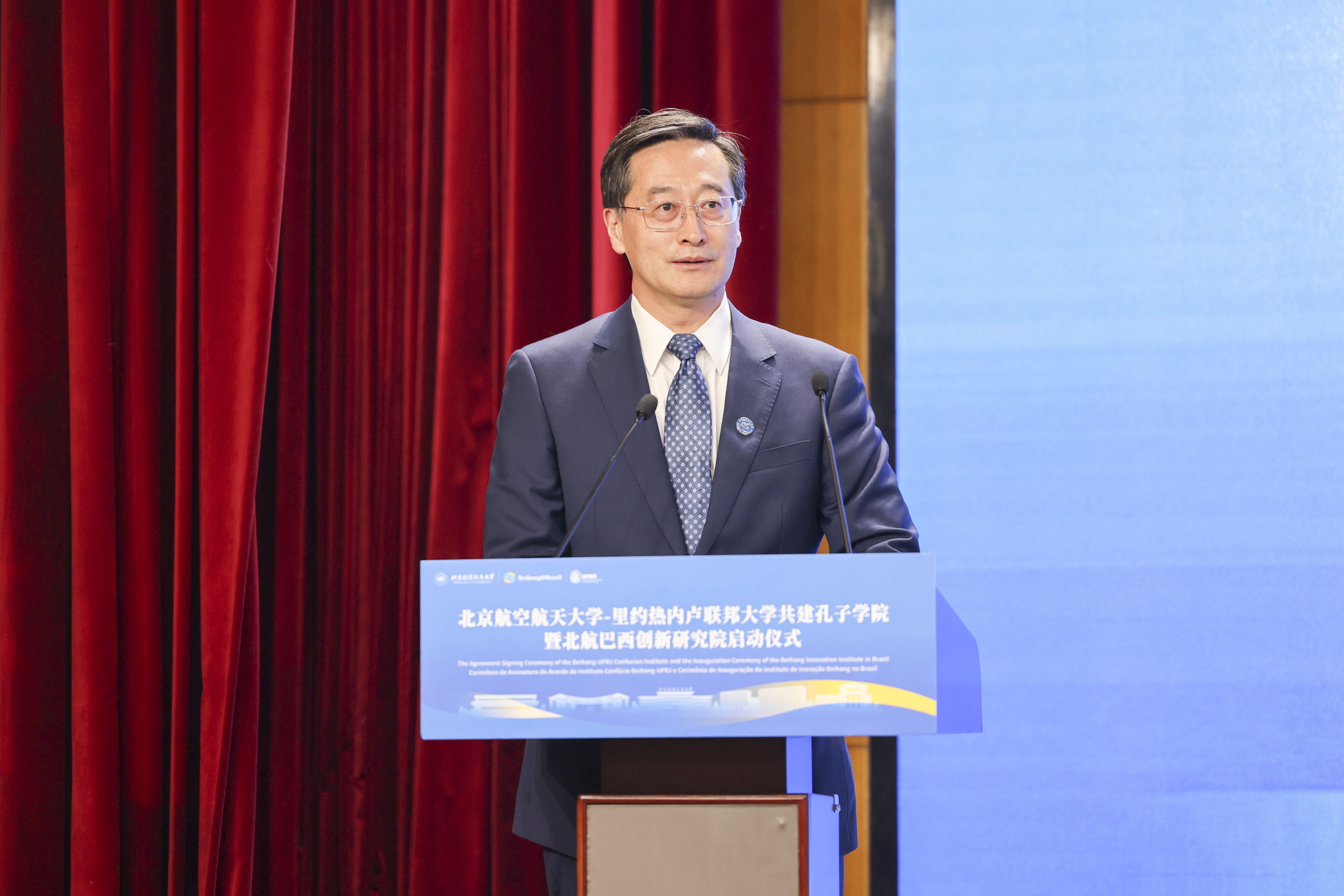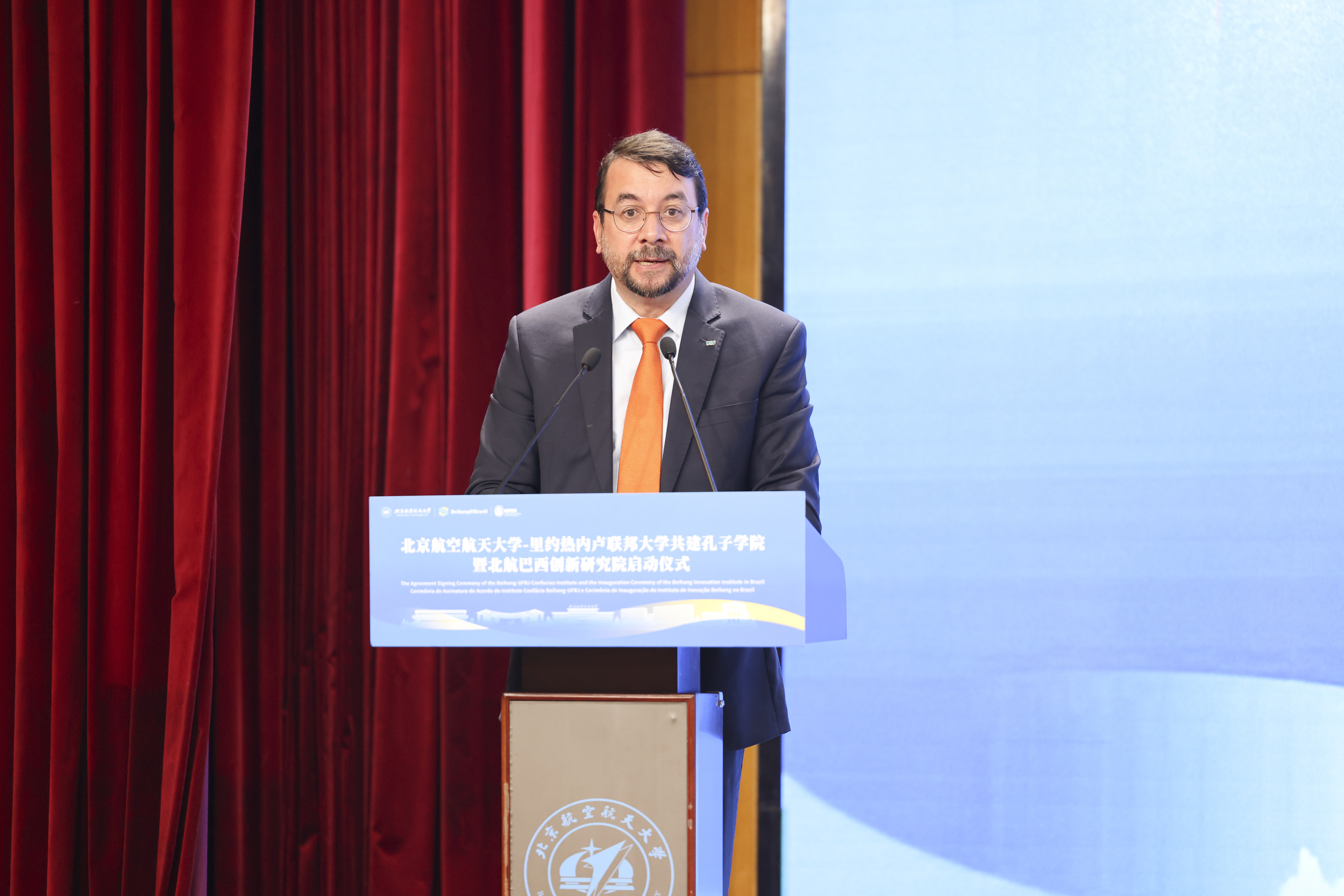 马塞洛·布雷加尼奥利在致辞中指出,北航-里约热内卢联邦大学孔子学院、北航巴西创新研究院和北航巴西中心宛如三座桥梁,将跨越山海,为巴西青年搭建起学习中文、触摸中华文化深厚底蕴的通途,助力他们在语言与文化的交融中拓展认知疆界。与此同时,这三个平台更将成为中巴科研协同创新的引擎,驱动双方在科技前沿领域并肩探索,为应对气候变化、资源短缺等全球性挑战凝聚智慧、输出足球大赢家的解决方案。期待北航与其他巴西高校开展更多合作,撬动金砖国家教育科技合作的潜能,共同绘制金砖国家教育科技深度融合、协同发展的“实景图”,为人类社会可持续发展倾注源源不断的智慧动能。