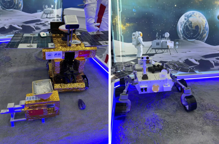 在成果展现场,缩比沙盘及视频联动展示了基于月球科研站的数实融合泛在未来学习空间。高度还原月球环境,模拟月面地形与月球科研站基础设施,开展月基环境探测和月基运输场景现场演示,实现1:5比例的实体月球车越障、科学任务采集等功能,开放编程接口供观众操控,实现“代码-硬件-场景”即时联动。现场还展示了ai助教系统智能助学与个性化学习评估。通过沉浸式沙盘、多媒体交互设备、实体模型动态演示及公众工作坊,结合线上教学资源,立体呈现“数字教材 虚拟仿真实验 实体实验”融合创新学习模式,全方位展示北航自主研发教学平台在拔尖创新人才培养中的领先技术和影响力。