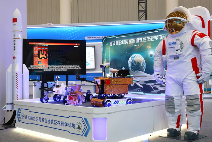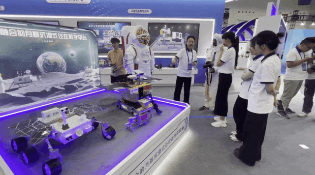 北京航空航天大学在开幕式展示环节亮相,虚实融合的月基沉浸式泛在教学平台,参加教育数字化成果展,北航是高等教育板块实物展示环节的四所参展高校之一,还参与慕课西部行连线直播环节,全方位展示了人工智能技术赋能教师教学、学生学习及虚拟仿真实验等方面的前沿技术和巨大潜力。