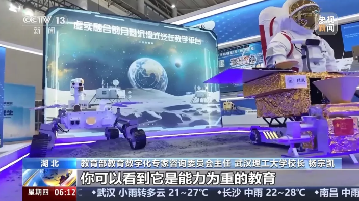 央视新闻频道报道北航“虚实融合的月基沉浸式泛在教学平台”在教育数字化成果展中展出