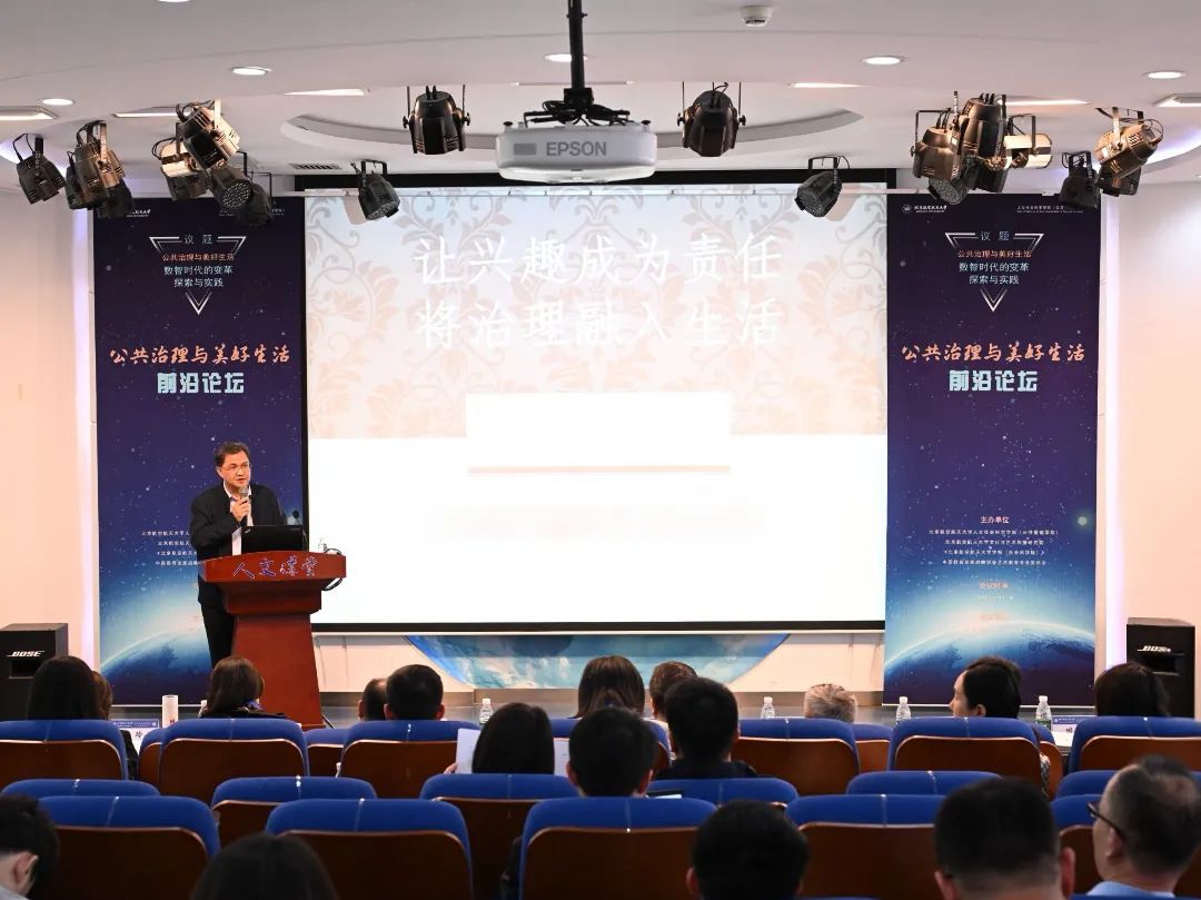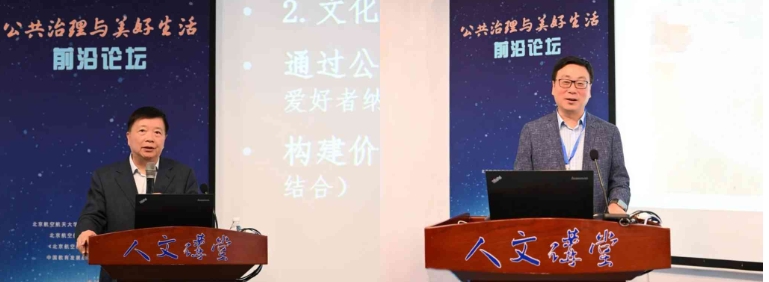 北京航空航天大学人文公管学院院长蔡劲松教授在主持论坛主旨报告时指出,当前人民对美好生活的向往愈加强烈、需求日益广泛,以公共治理变革和创新加快建构美好生活,是当代中国公共管理学界的重要任务与责任担当。必须适应数智技术迅猛发展新形势,以系统思维、本土理论创建和实践创新,面向国家和社会治理的复杂图景,推动公共管理学科与文化艺术等领域深度融合,也亟需更多的公管学者打破学科专业的界域,对社会发展和美好生活、精神生产与文化治理等进行深切关注、观察与思考,在以公共治理创新赋能文化传承发展及美好生活等方面有更大作为。