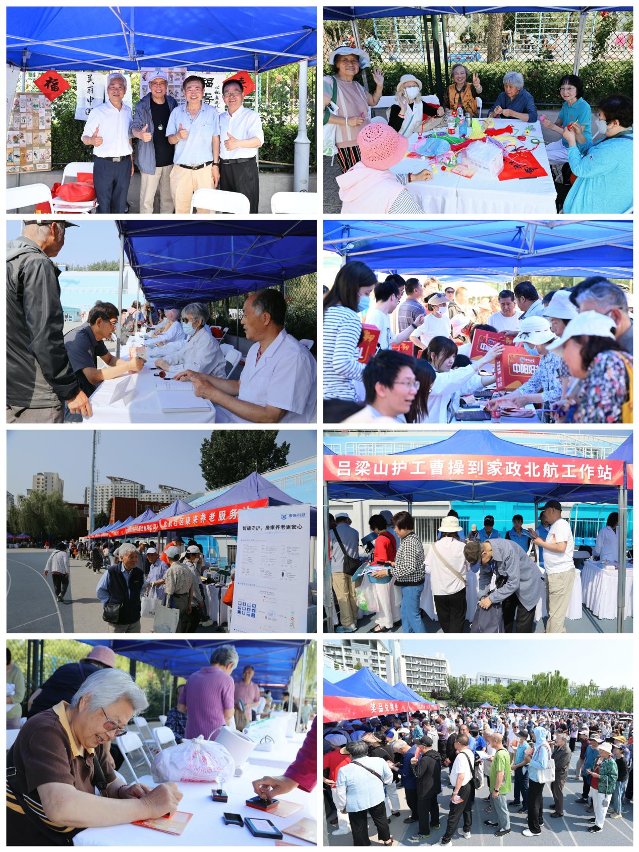 特色活动区域亮点纷呈,书画研究会老师们现场挥毫,为参与者题写“福”“寿”;手工艺术协会赠送各式精美珠编吊坠,指导老同志制作泥塑和扭扭棒作品;健康咨询区专家耐心解读体检报告,解答养生疑问;游戏互动区投壶、夹球等趣味项目引来阵阵喝彩;养老机构咨询区提供专业服务资讯;回忆录定制区带领老同志重温峥嵘岁月。