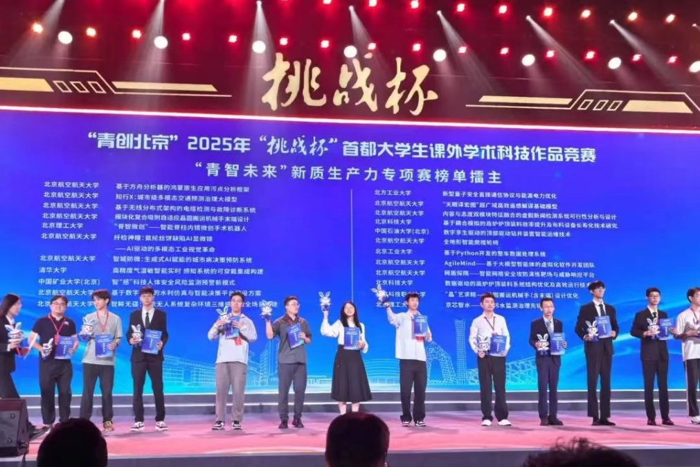 “挑战杯”首都大学生课外学术科技作品竞赛是由共青团北京市委员会联合北京市教育委员会、北京市科学技术协会、北京市学生联合会开展主办的一项具有导向性、示范性和群众性的大学生课外学术科技活动。2025年首都“挑战杯”由北京信息科技大学承办。