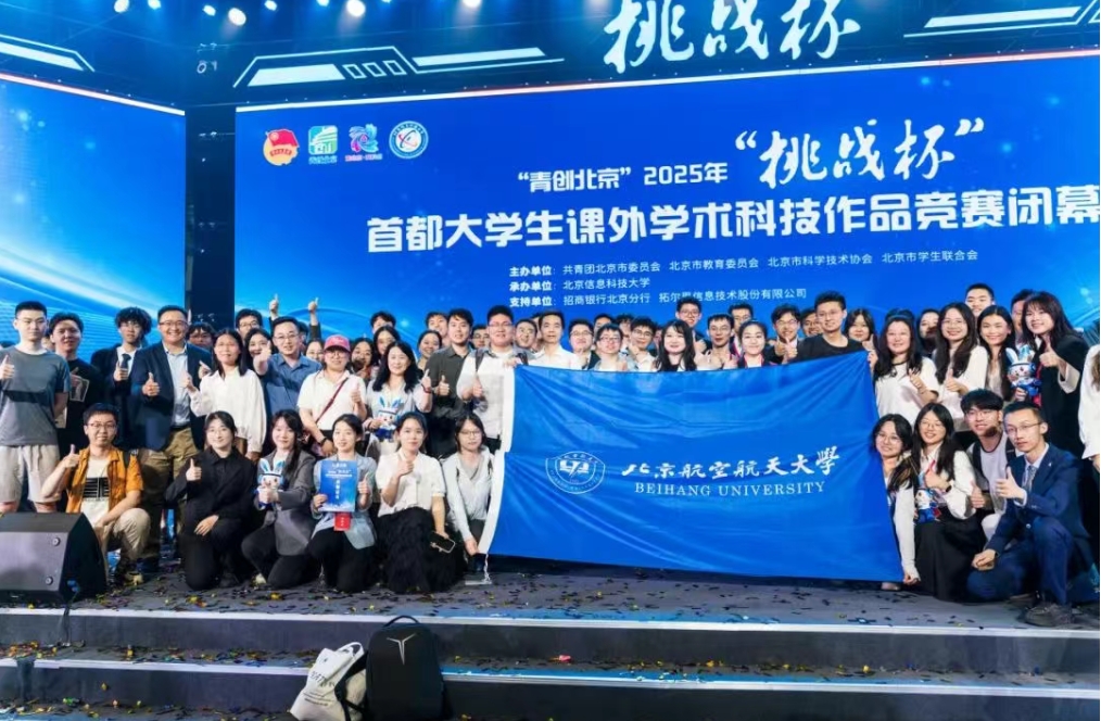 北航新闻网6月3日电(航宣)日前,“青创北京”2025年“挑战杯”首都大学生课外学术科技作品竞赛圆满落幕,北京航空航天大学主赛道15项作品全部入围终审答辩,为北航历年入围项目最多,最终获得5项特等奖、7项一等奖、3项二等奖,主赛道本科生项目特等奖数并列第一,团体总分再创历史新高。