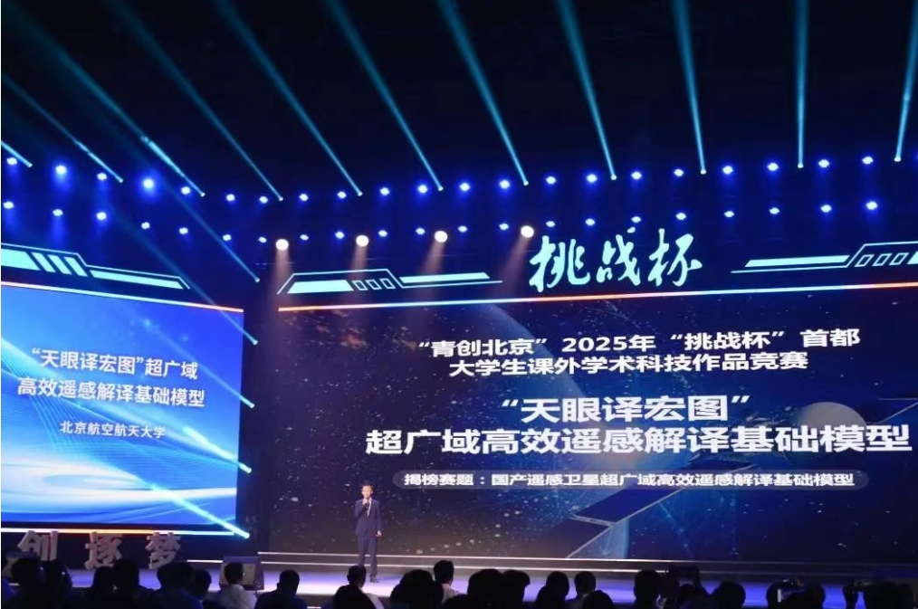闭幕式现场,北航揭榜挂帅专项赛擂主项目《“天眼译宏图”超广域高效遥感解译基础模型》进行项目路演展示。