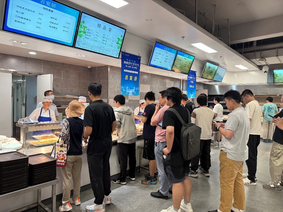 午餐时分,学院路校区学五食堂、沙河校区东区第一食堂的专窗前排起了长队,溜肉段、地三鲜、招牌蒸饺等特色“吉菜”倍受师生喜爱。
