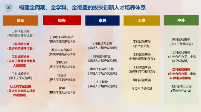2023年,北航入选首批高校学科交叉中心试点建设任务,构建学科交叉融合发展的新机制,解决制约学科交叉融合关键问题,以项目方式推进高层次复合型人才培养。2025年,北航作为全国首批6所高校之一,获批增设“低空技术与工程”专业。《2025年国务院政府工作报告》中提及的商业航天、低空经济、深海科技、生物制造、量子科技、具身智能、6g等7个新兴、未来产业方向,都是北航的优势学科,均已布局相关招生专业。