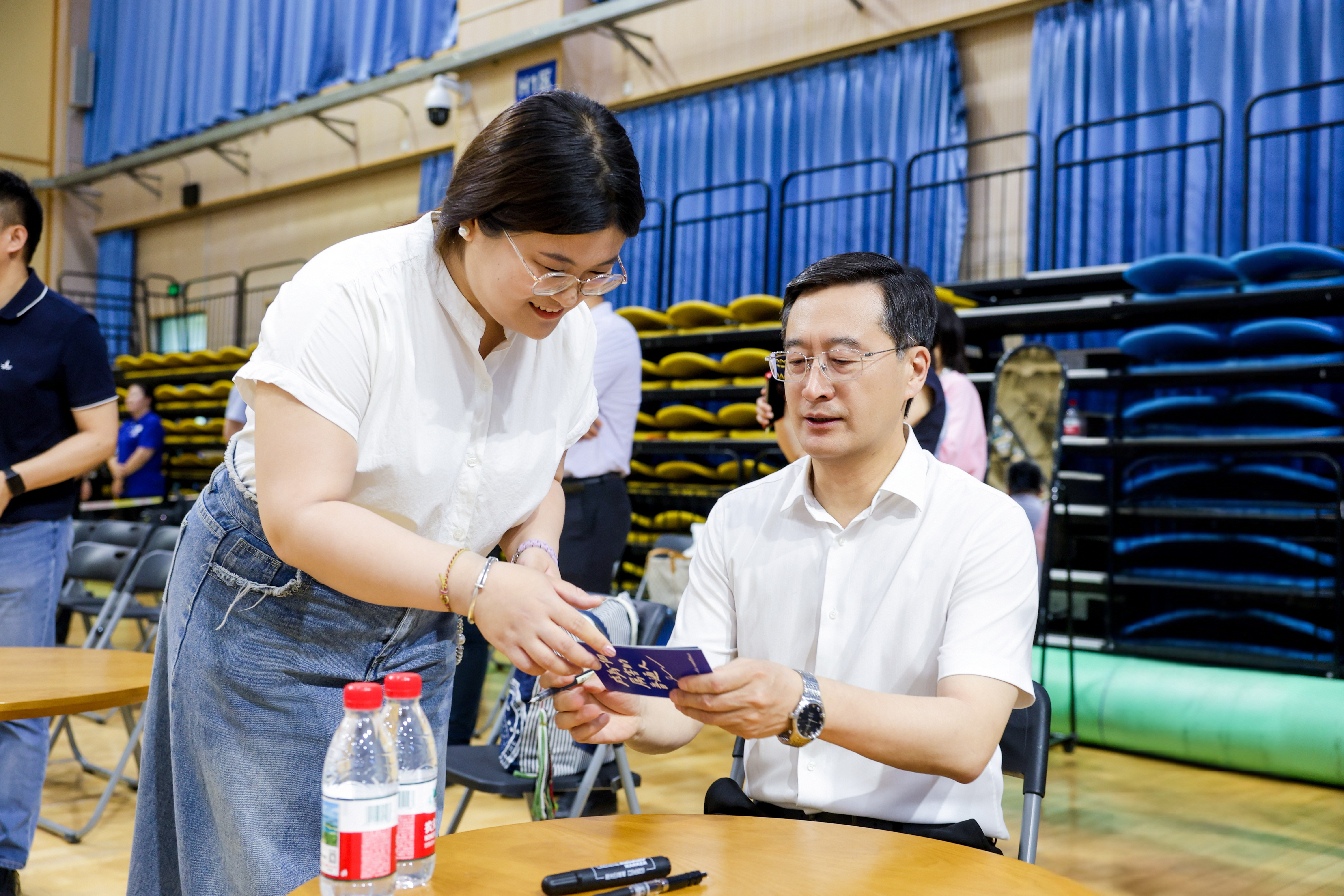 合影间隙,毕业生们满怀感恩与不舍,纷纷来到校领导与师长身旁,热情邀请师长合影留念,用镜头定格下珍贵的师生情谊,并表达对母校辛勤培育的由衷感谢和对学校事业蒸蒸日上的美好祝愿。学校领导老师为毕业生们题写临别赠言,并与大家亲切交谈,勉励大家始终秉持“德才兼备,知行合一”的校训,赓续以“空天报国”为内核的北航精神,心怀“国之大者”,勇担时代重任,在科技创新的星辰大海里奋楫笃行,在服务国家战略需求的广阔天地中建功立业,努力成长为可堪大用、能担重任的栋梁之才。