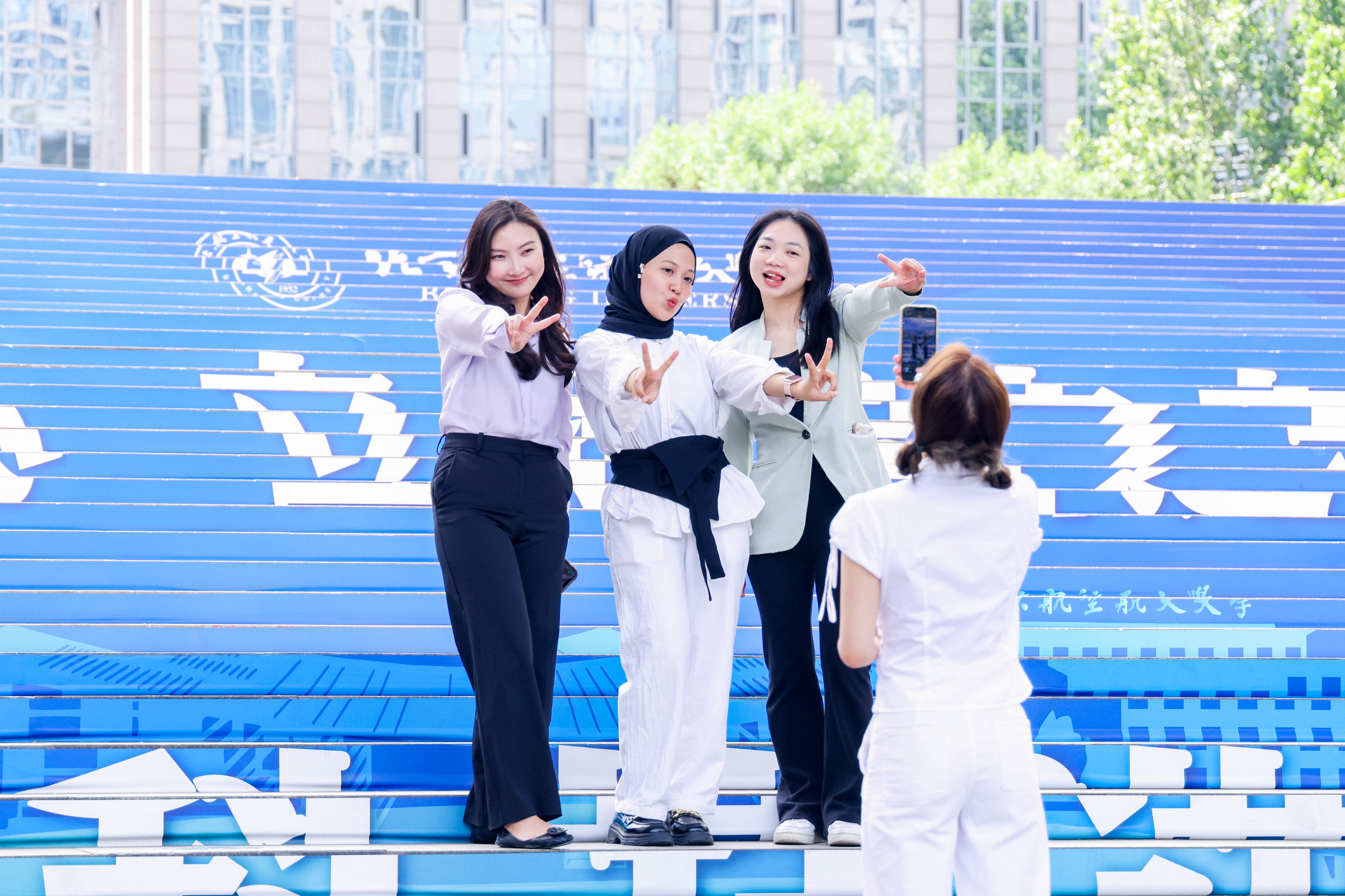 合影现场,气氛热烈,青春的朝气在每一名毕业生身上熠熠生辉。每名毕业生身上都洋溢着青春活力。“心怀家国,空天逐梦”“矢志长空,铁翼乘风”等激昂的口号此起彼伏,与掌声、欢呼声交织共鸣,生动诠释着毕业生们对母校的深深眷恋、对未来的无限憧憬以及身为北航人的无上荣光与自豪。