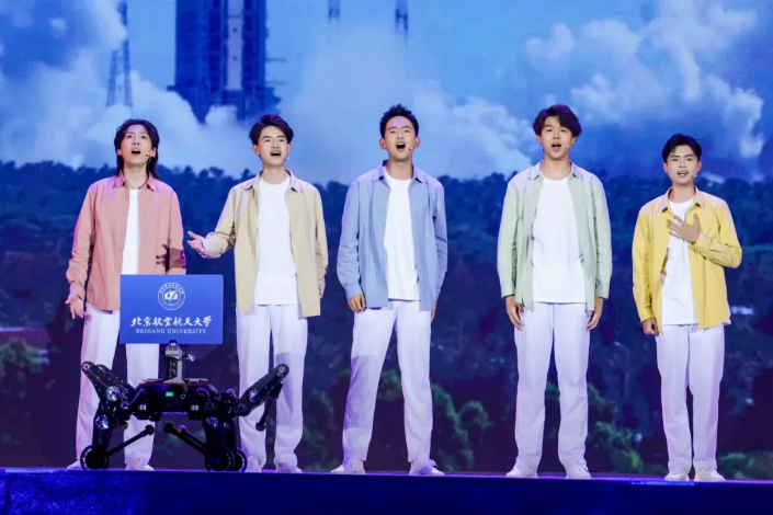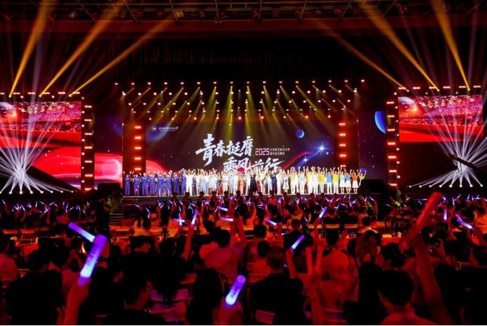 晚会主题为“青春挺膺・乘风前行”,通过《青春砺行》《空天逐梦》《强国有我》三个篇章的精彩演绎,讲述2025届学子的成长故事,展现空天报国的赤子情怀。