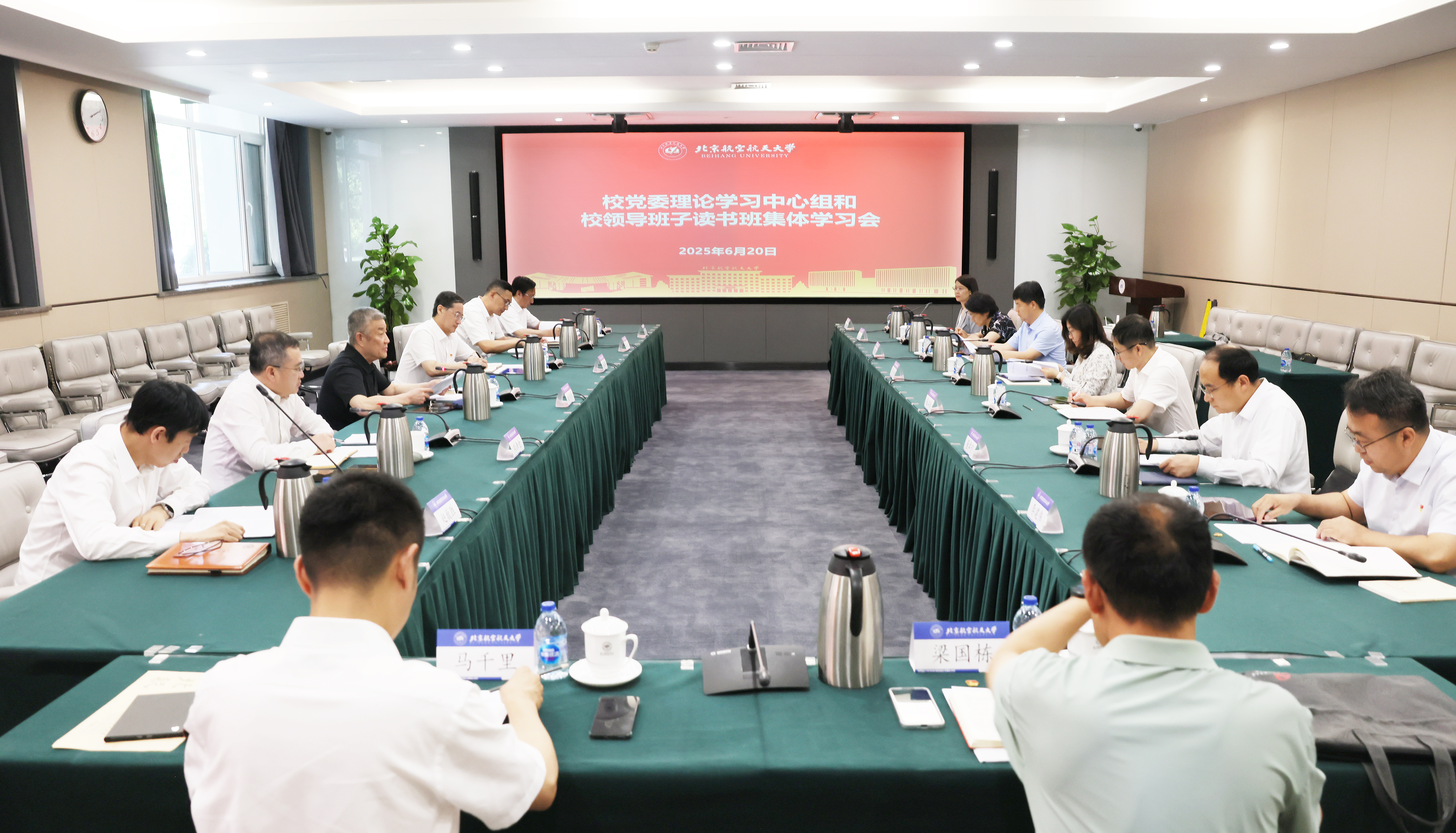 北航新闻网6月20日电(航宣)6月20日,我校在学院路校区如心会议中心中报告厅召开党委理论学习中心组和深入贯彻中央八项规定精神学习教育校领导班子读书班集体学习会,深入学习贯彻习近平总书记关于加强党的作风建设的重要论述和中央八项规定及其实施细则精神,学习领会习近平总书记关于加强社会工作、提升社会治理效能的重要论述,坚持以人民为中心,走好新时代党的群众路线,持之以恒推进作风建设,汇聚高质量内涵式发展合力,推动学习教育走深走实。校党委书记赵长禄主持会议。