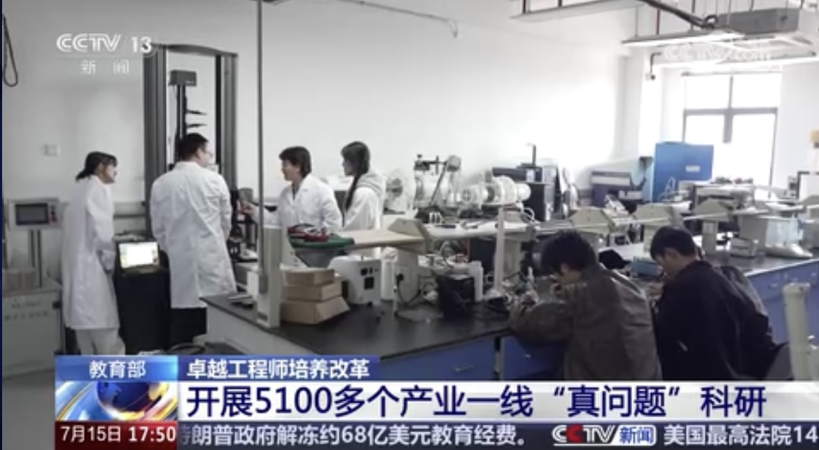 【解说】三年来,高水平大学联合一流企业,建设了三批共40家国家卓越工程师学院,聘任校企导师达2.32万名。北京、上海、粤港澳大湾区建设4个国家卓越工程师创新研究院,高校企业国家实验室成立了中国卓越工程师培养联合体。