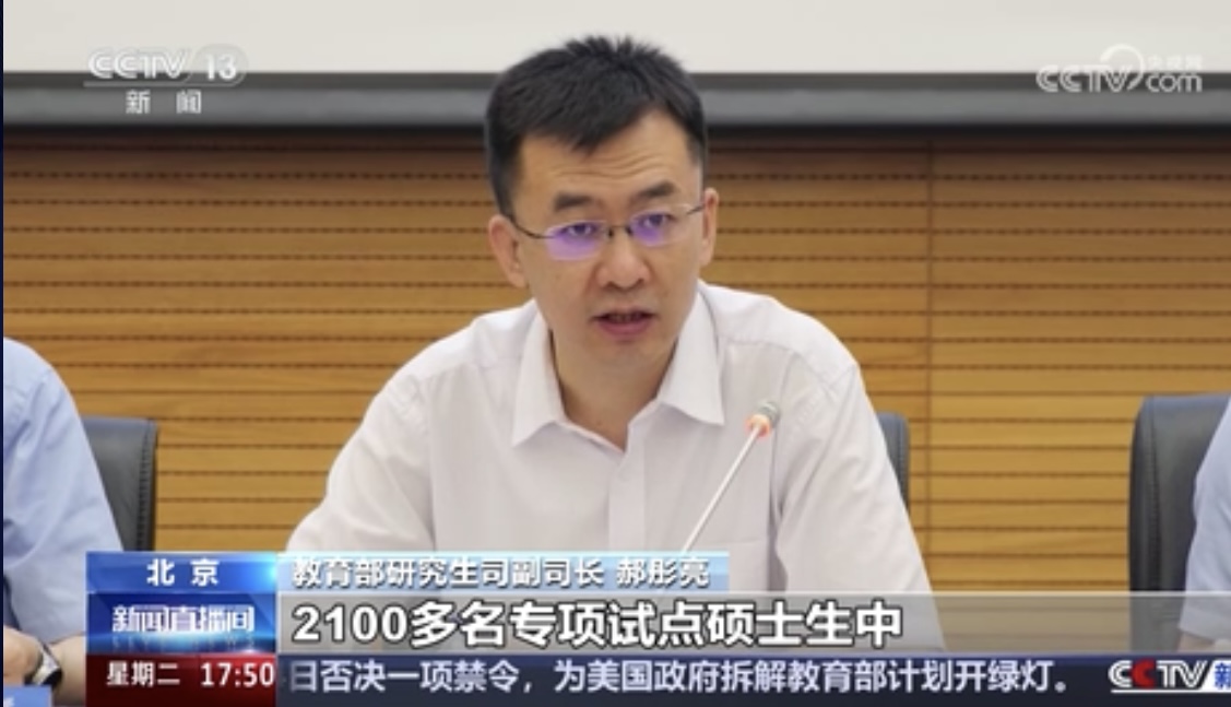 【同期】教育部研究生司副司长 郝彤亮:首批今年毕业的2100多名专项试点的硕士生中已经有67人以实践成果申请学位。今年6月份已经毕业的工程硕士,有70%多的就留在了国防军工或者高端制造业的领军企业,就业去向精准服务了国家的战略。