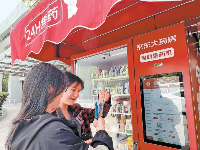 “机器里面药品的种类多,我觉得挺便利的,能够满足我们日常的需要。”这台占地2平方米的智能终端,上线了二十余种乙类otc药品和消杀用品,为两校区师生提供7×24小时的一站式便捷购药体验,构建了“校医院 京东智能终端”的互补服务模式。