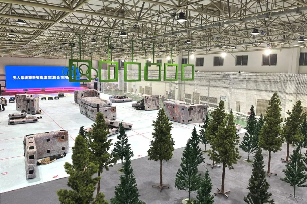 图为北京航空航天大学无人系统集群智能虚实混合试验环境