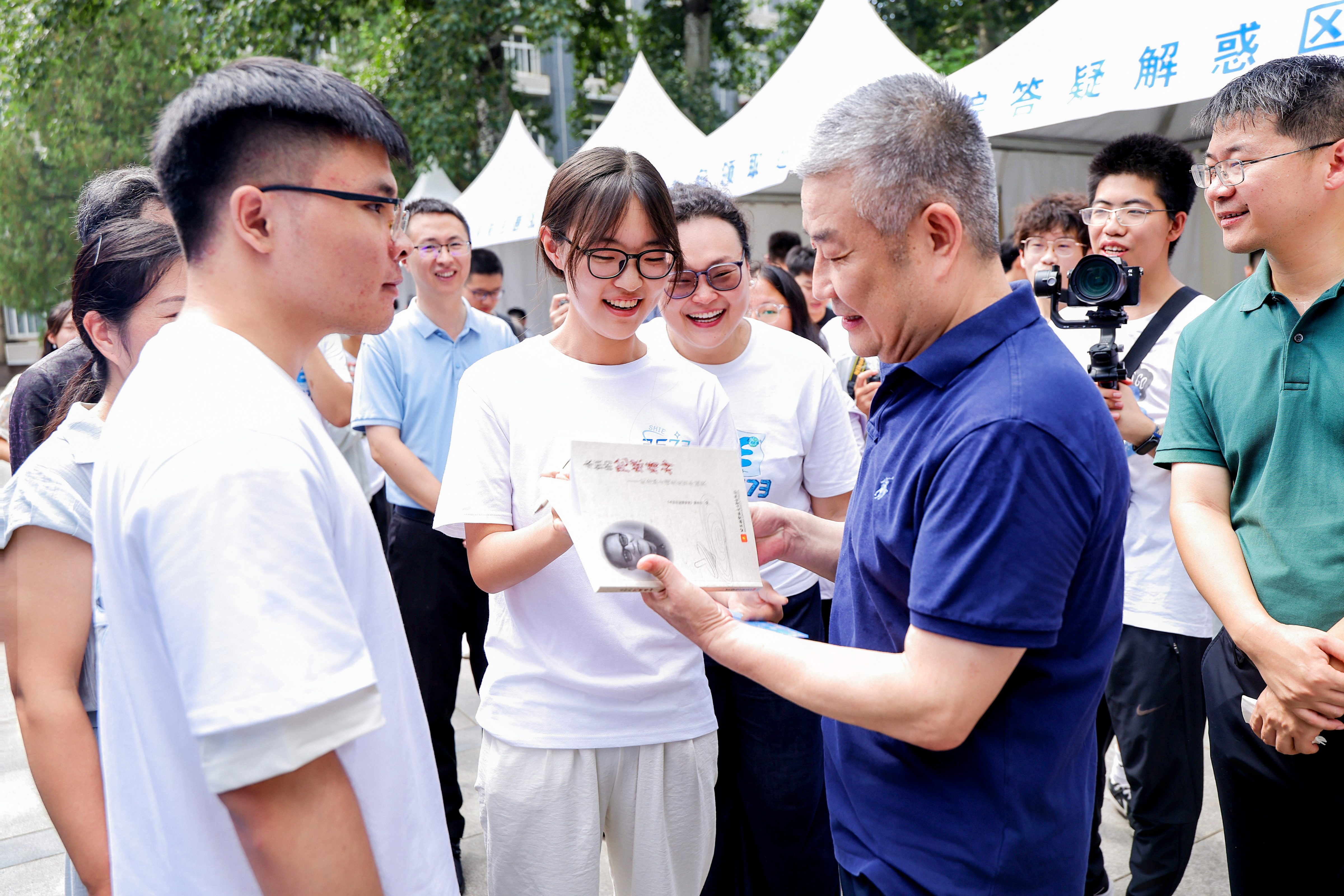在杭州国际校园,副校长赵巍胜在杭州国际校园参加迎新活动,与新生交流。