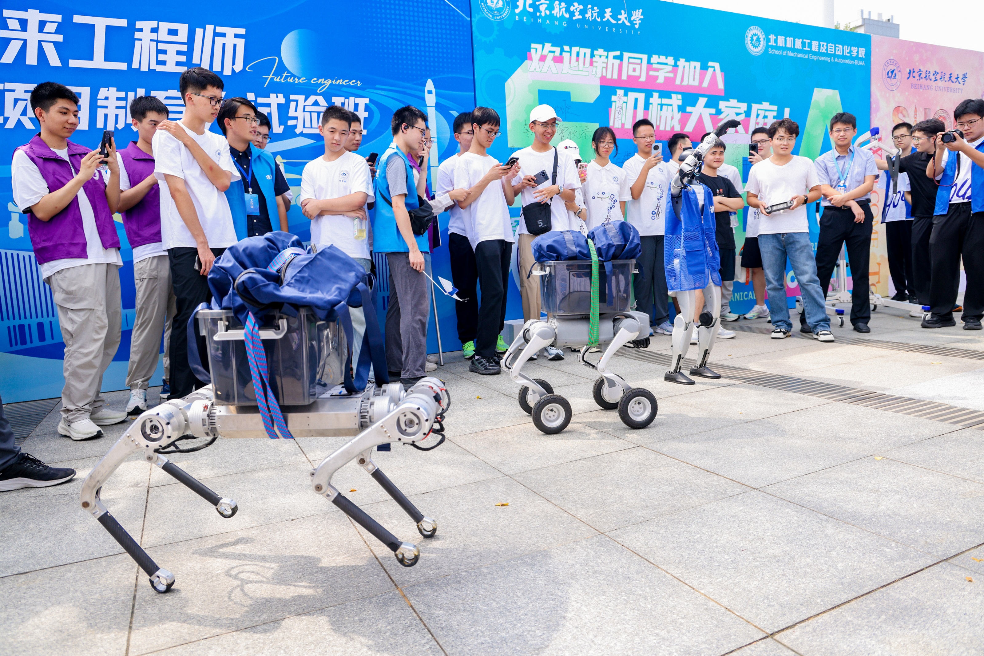 各学院、书院结合自身特色,精心设计了丰富多样的迎新活动,帮助新生更快地熟悉环境、融入集体。来自机械工程及自动化学院具身智能机器人研究院的人形机器人、四足机器人十分瞩目,稳定行走,与新生打招呼,协助搬行李,看似简单的动作背后是模型训练、灵巧驱动等前沿技术的支撑,也是人形机器人项目制培养的核心内容。