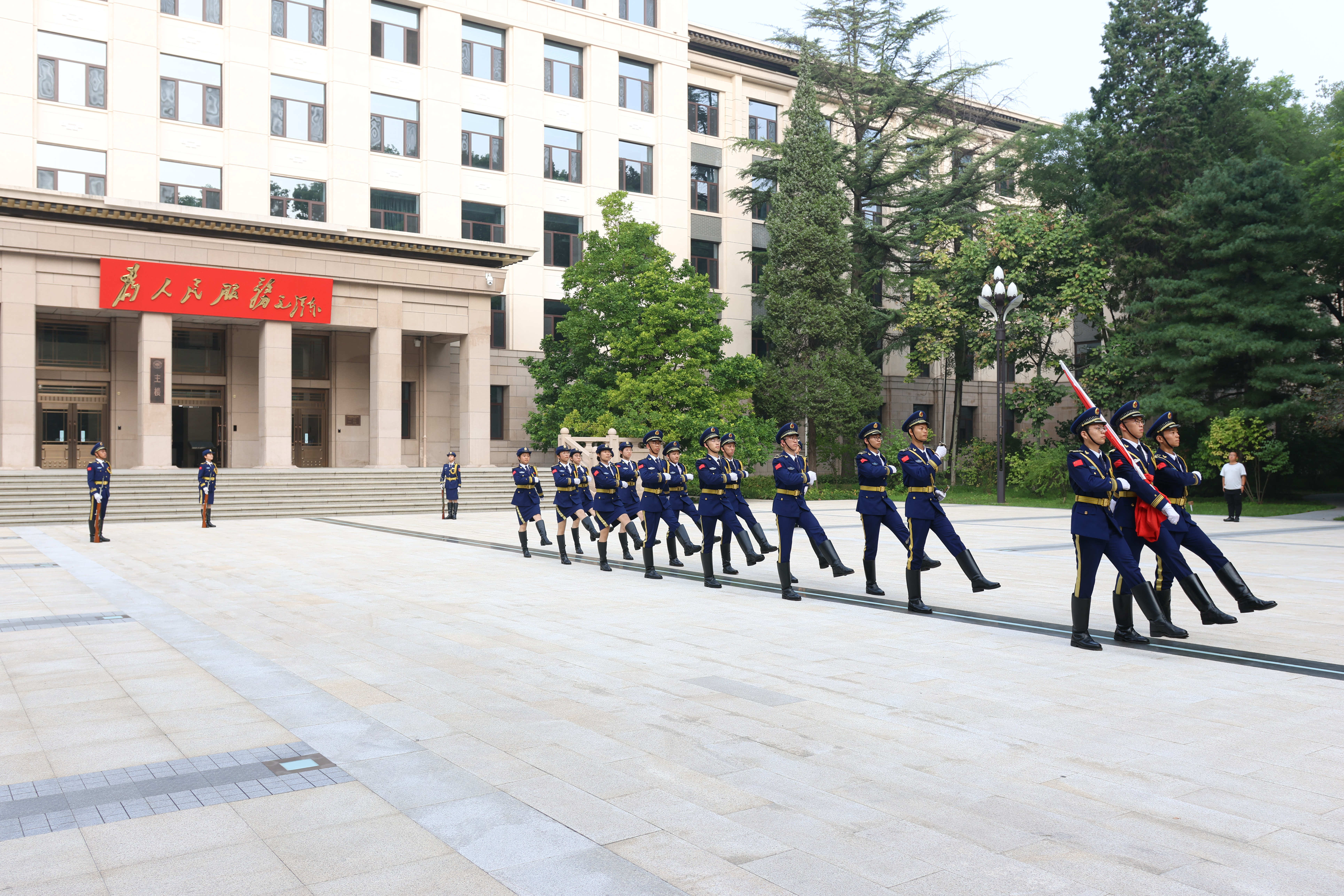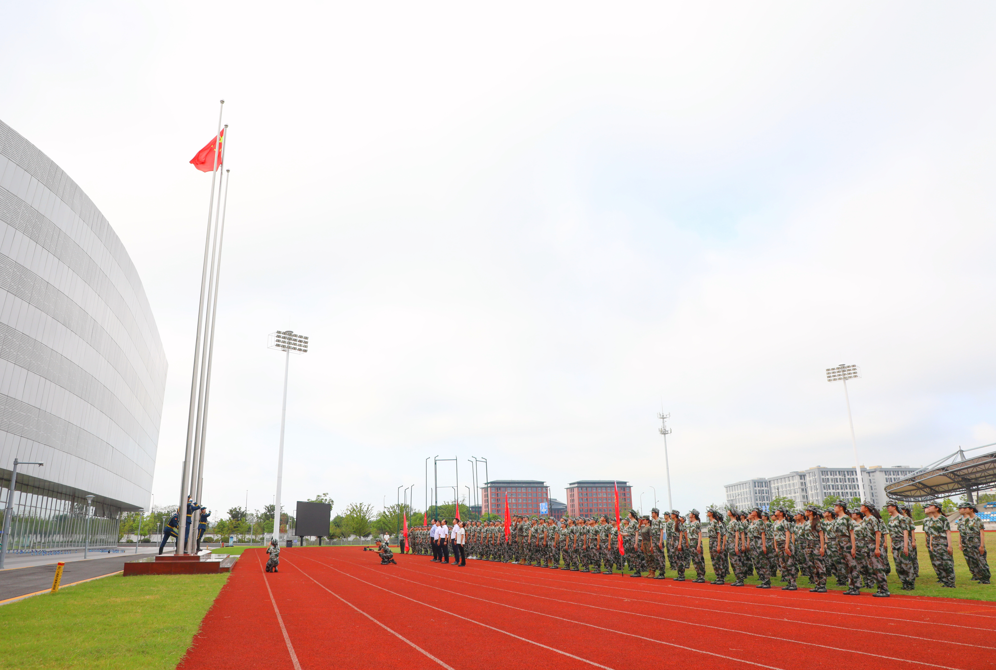 北航新闻网9月3日电(航宣)9月3日早8时,时值纪念中国人民抗日战争暨世界反法西斯战争胜利80周年大会在北京天安门广场隆重举行之际,北航在京杭两地校园同步举行升旗仪式。学校国旗护卫队的同学们昂首挺胸、步伐坚定,肩负着使命与荣光。在场师生共同注视着鲜艳的五星红旗向着朝阳升起。